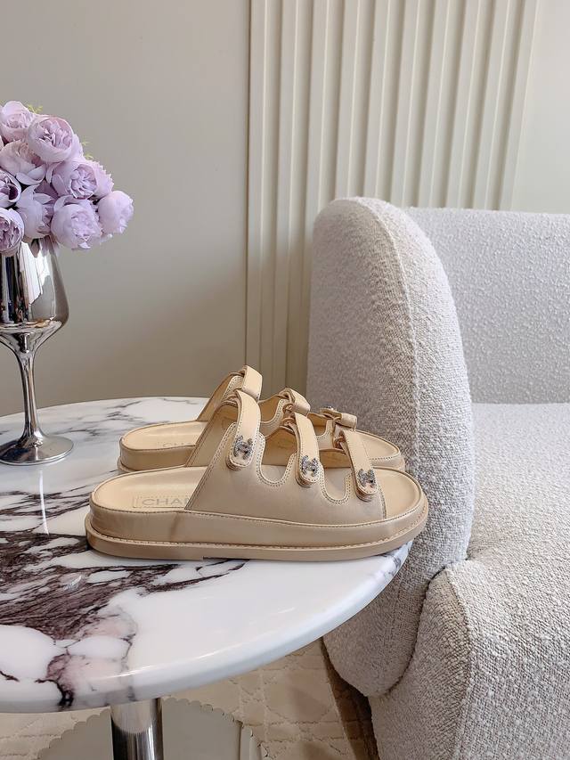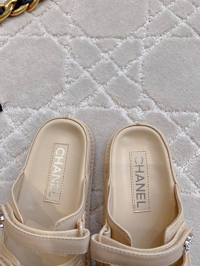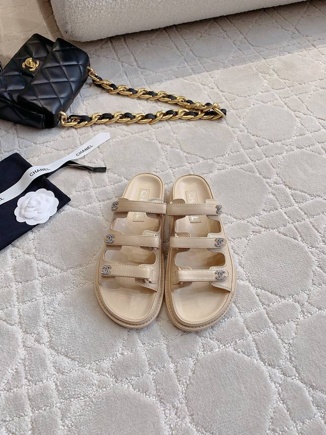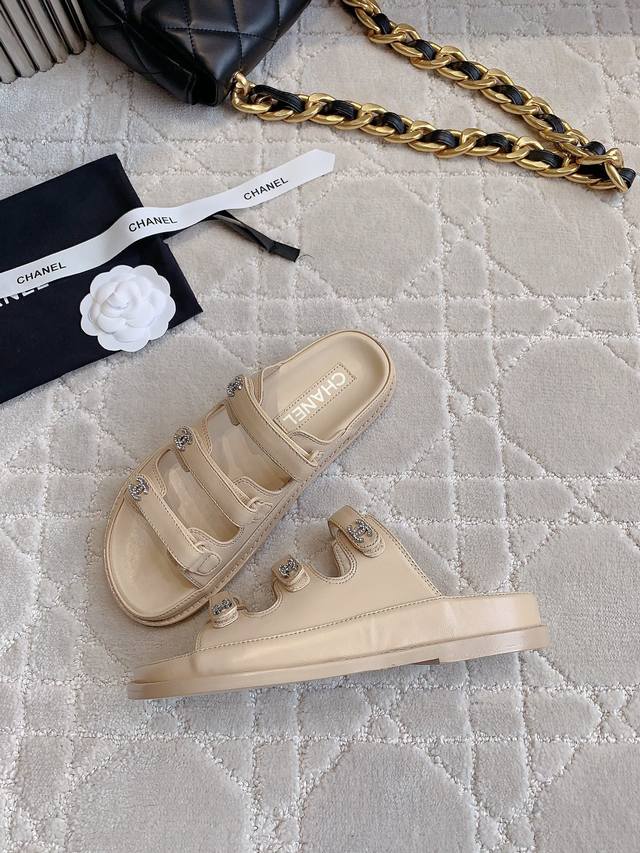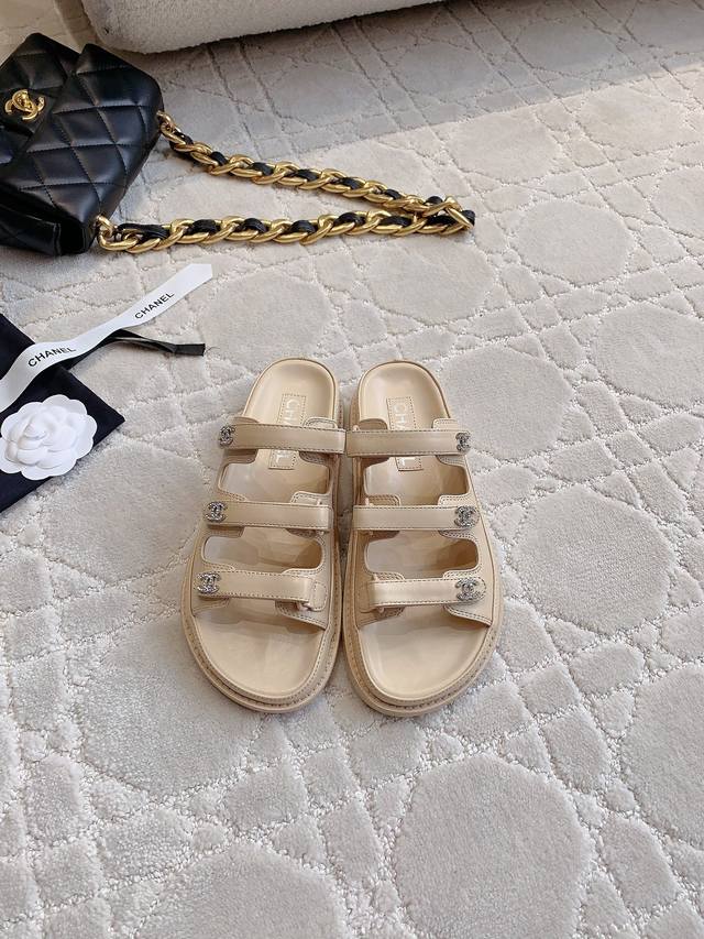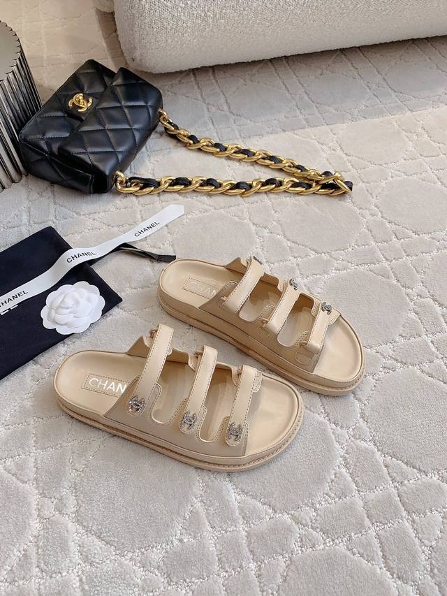 Chane*新款升级版魔术贴拖鞋顶级品质!三带魔术贴设计 搭配小Logo钻扣 精致感满满 国内外明星网红的超爱!