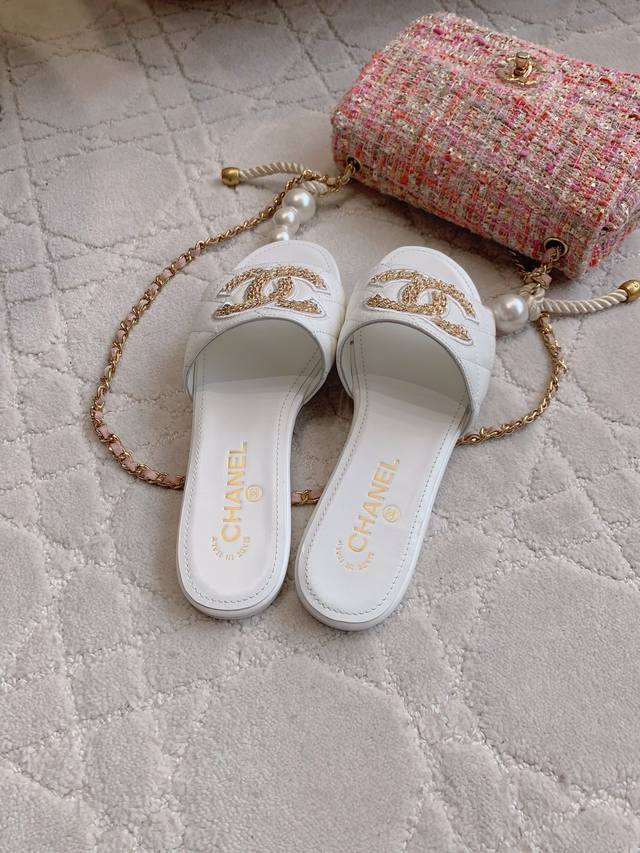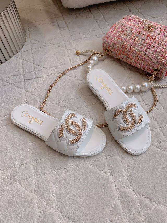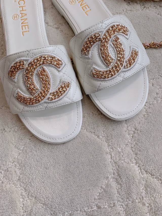 Chane*新款平底拖鞋 经典度假风 双C Logo装饰简约清爽 百搭单品