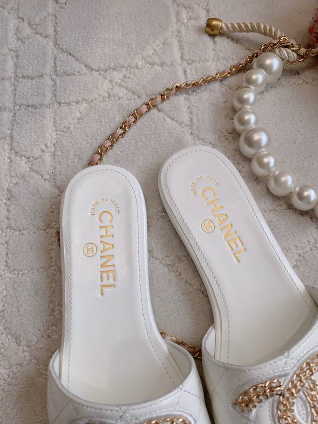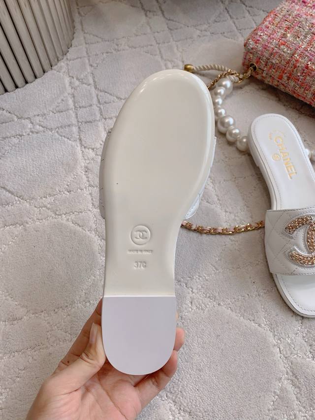 出厂价p Chane*新款平底拖鞋 经典度假风 双C Logo装饰简约清爽 百搭单品 鞋面小牛皮 牛仔布 内里垫脚羊皮 意大利真皮大底 尺码35-39 34 4