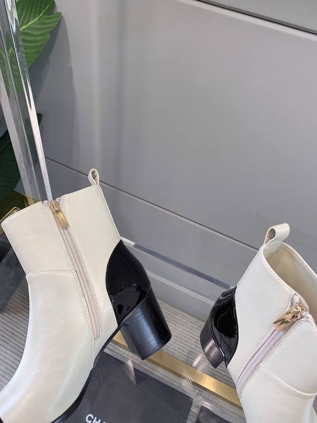 出厂价p Chane*新款粗跟短靴 百搭舒适型! 鞋面超软羊皮 内里垫脚羊皮 意大利真皮大底 跟高6Cm 码数35-39 40定做