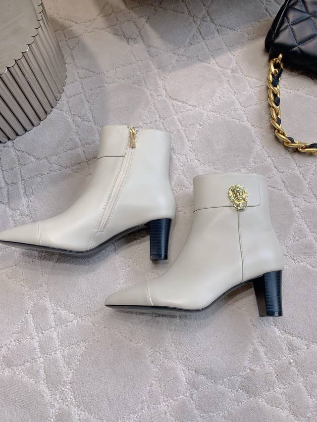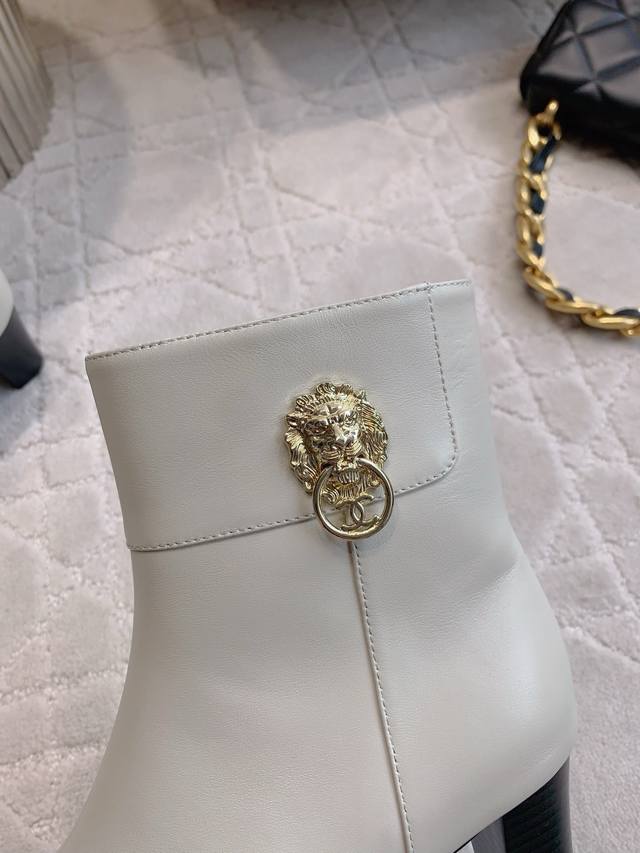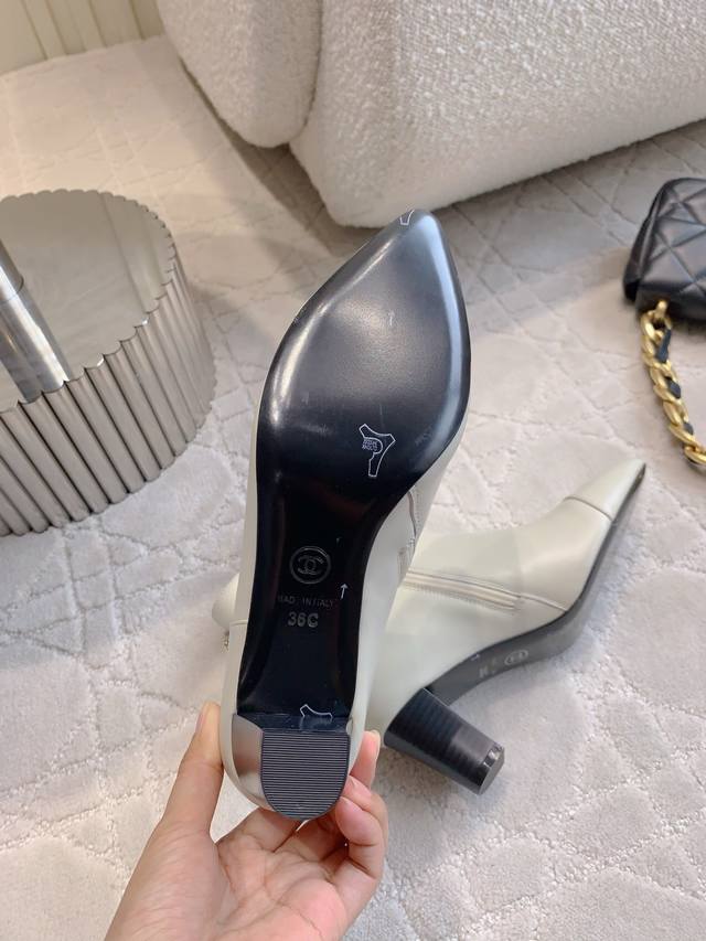 Chane*新款粗高跟短靴 经典百搭系列 金属Logo点缀 鞋身很是耐看 拉长腿部线条 超级显腿细 上脚效果绝绝子