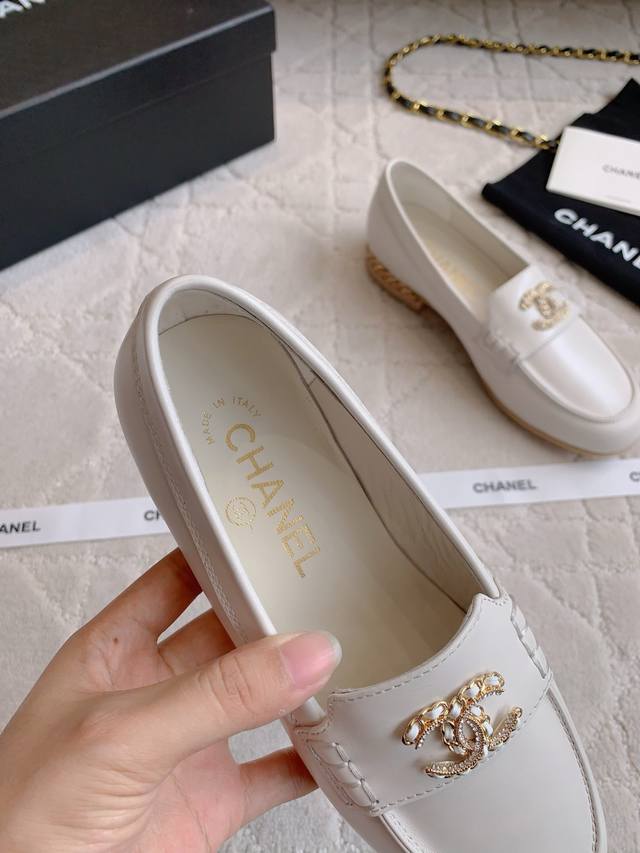 Chane*新款链条扣乐福鞋 经典不过时的鞋型 搭配双C开模Logo精致的高级感 学院风百搭又减龄 各种穿搭都能驾驭