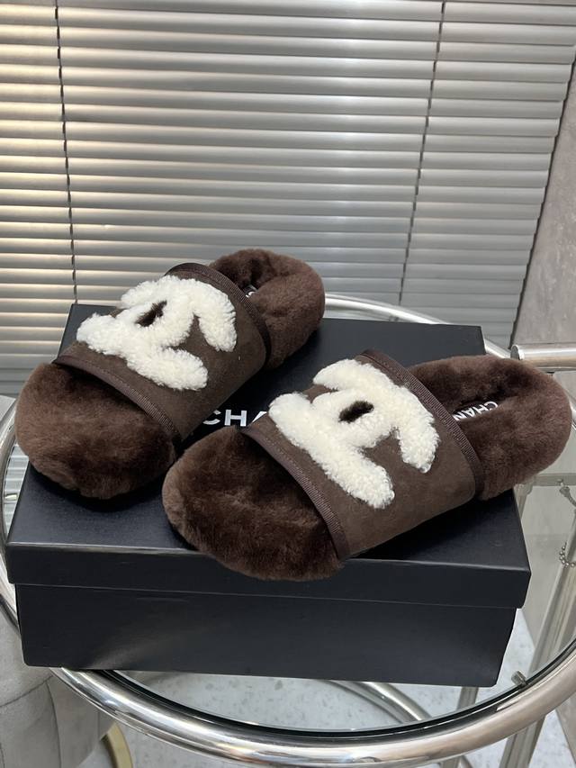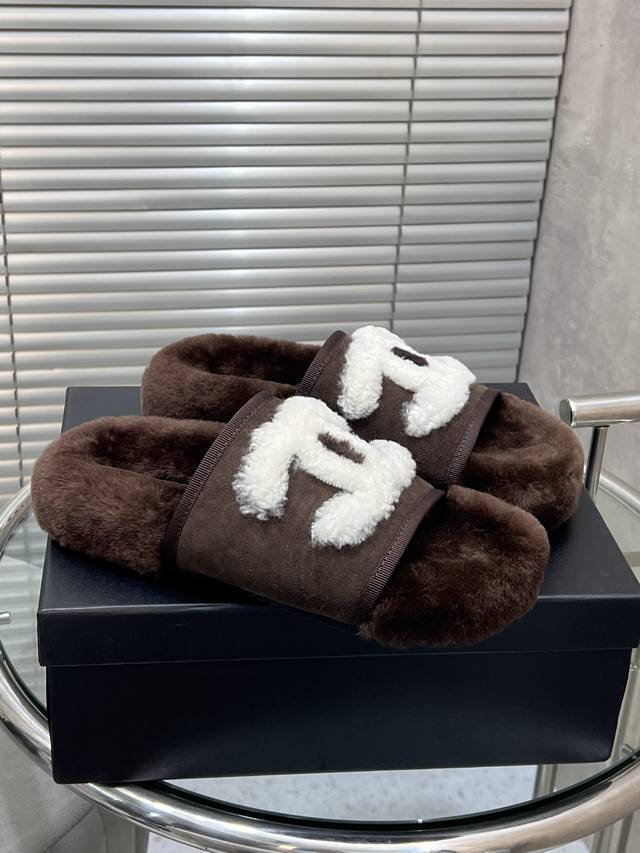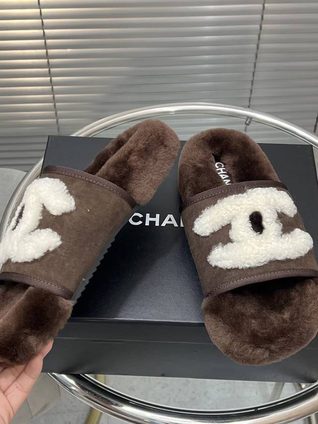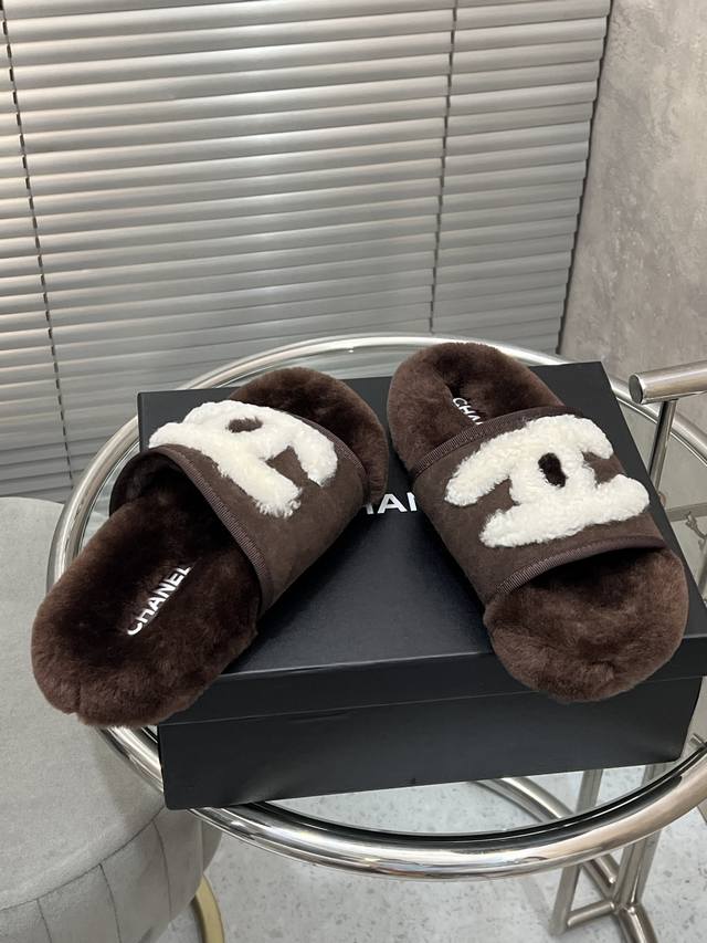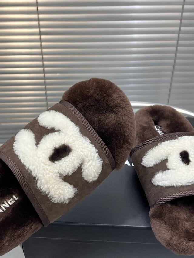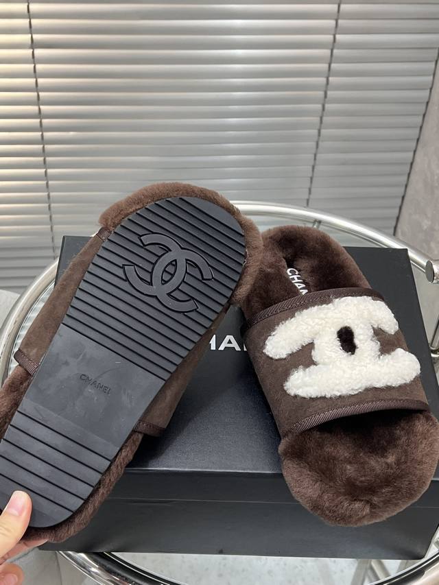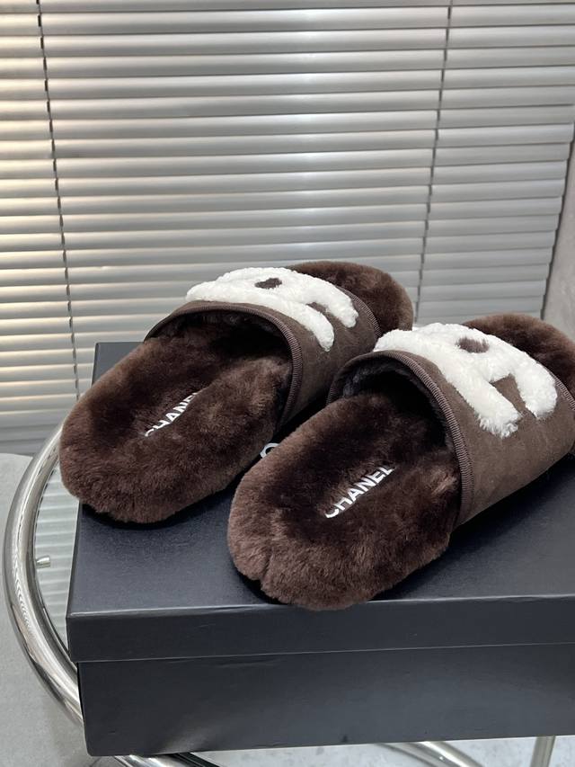 出厂 Chanel 小香秋冬字母羊毛拖鞋 羊毛是选用欧洲进口A级羊毛 大底:原版一样的Tpu材质、底片耐磨防滑 码数:35-41 40 41定制