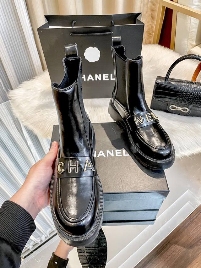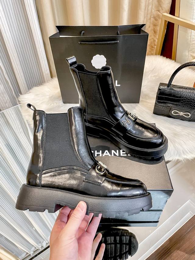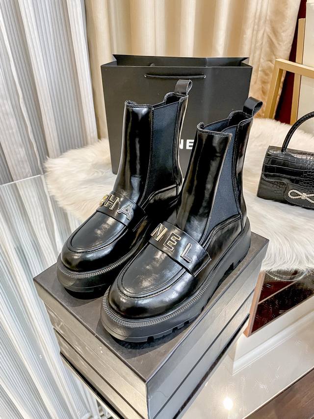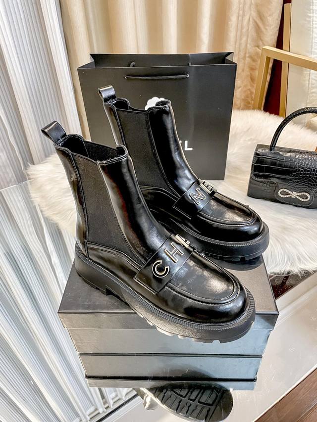 Chanel 香奈儿2024早春新款厚底短靴 字母扣切尔西靴