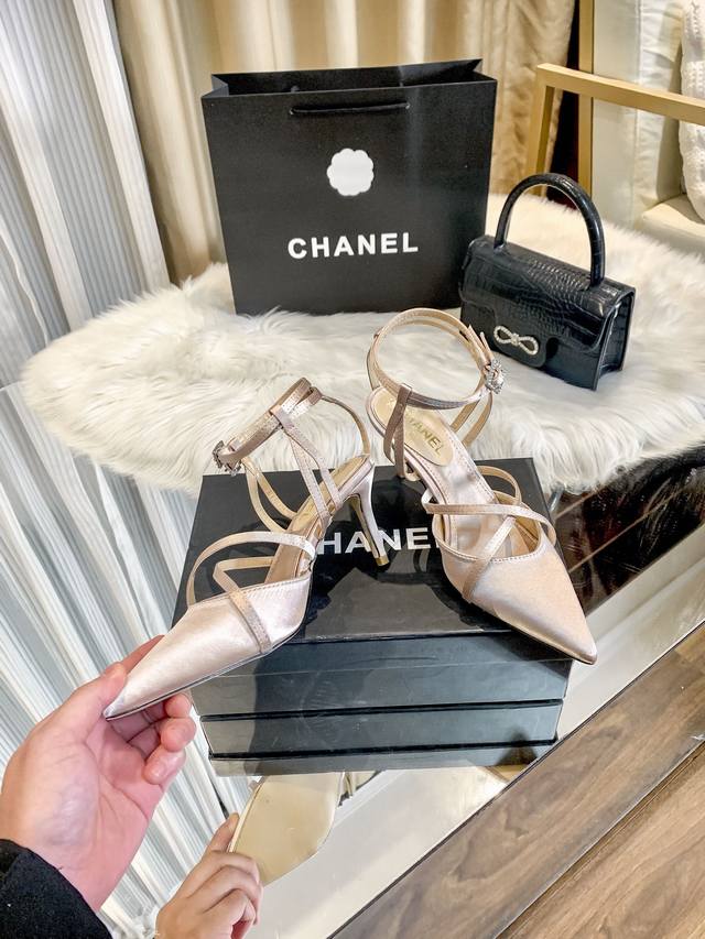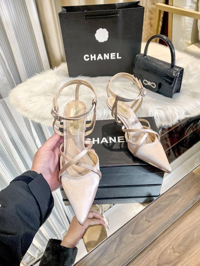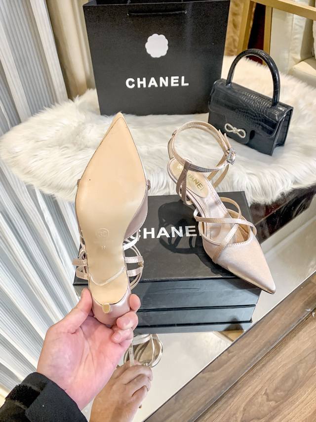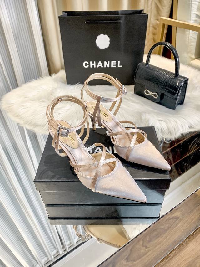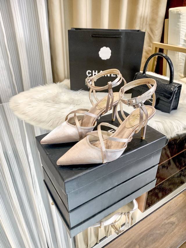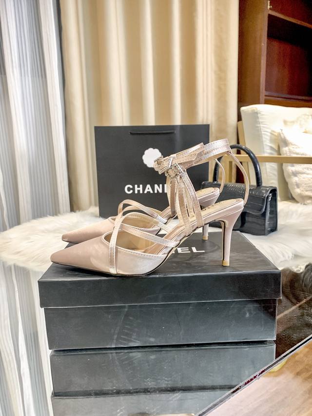 出厂:Chanel 香奈儿新款 真丝细带尖头高跟凉鞋 细跟单鞋女鞋跟高:8Cm码数:34-42