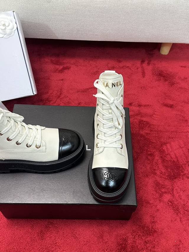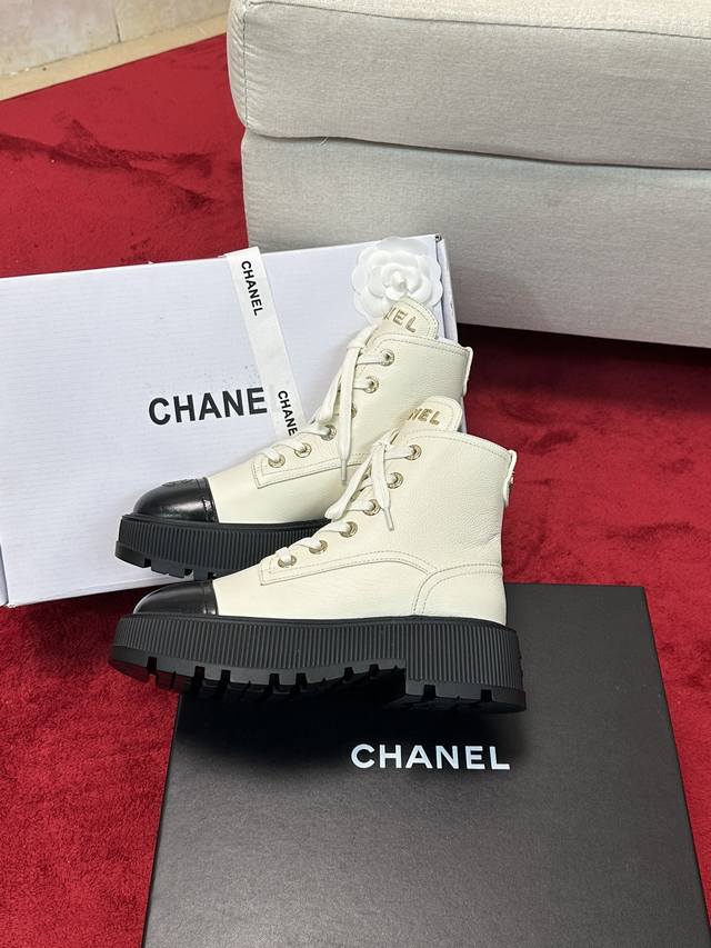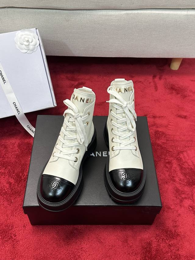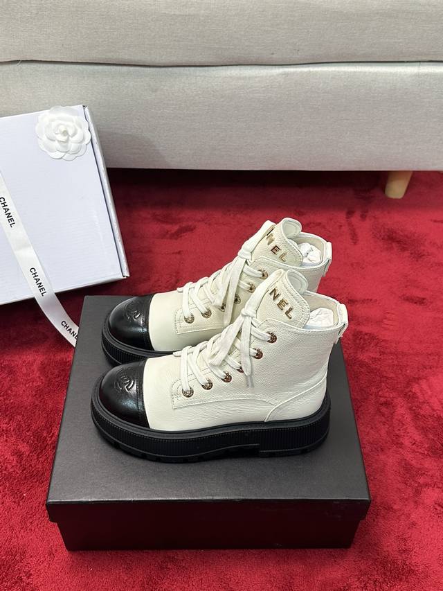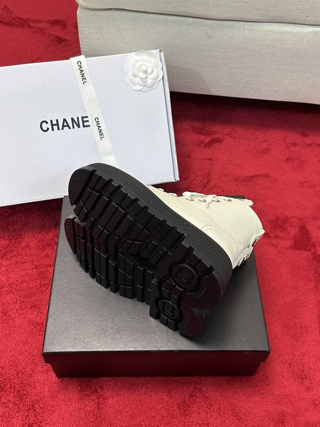 厂价单鞋 布面 短靴 毛里 Chane* |小香经典双c秋冬厚底 系带松糕底机车短靴单鞋 鞋面采用原版定制牛皮 内里混种羊皮 原版开模橡胶成型大底! 底高:5C