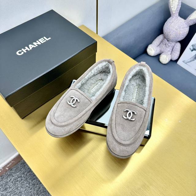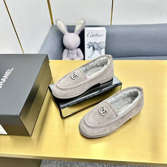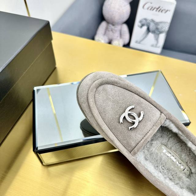 厂价 顶级版本 Chanel 24K秋冬新款毛茸茸乐福鞋 泰迪毛毛鞋 很舒服诶 美拉德棕色还是很适合秋冬的~ 鞋面麂皮 内里皮毛一体 真皮大底 Size:35-