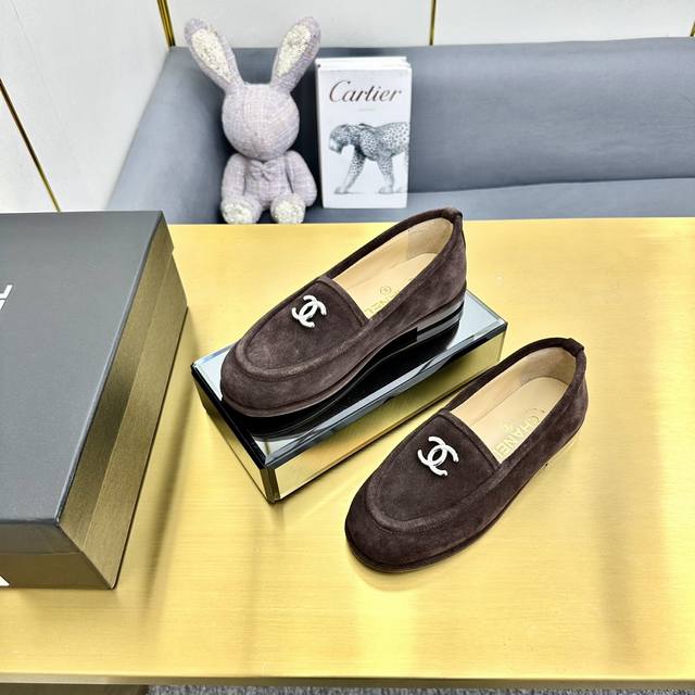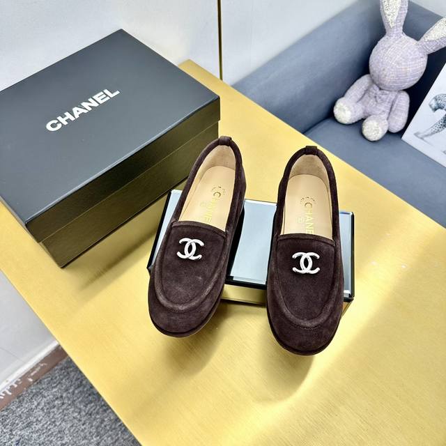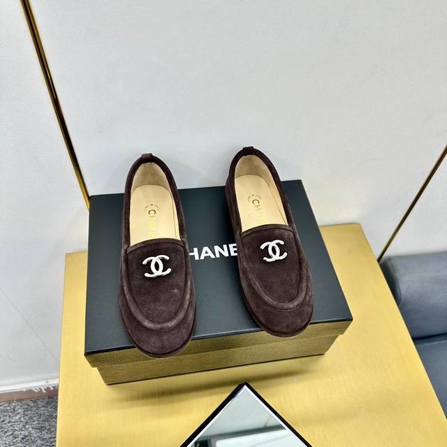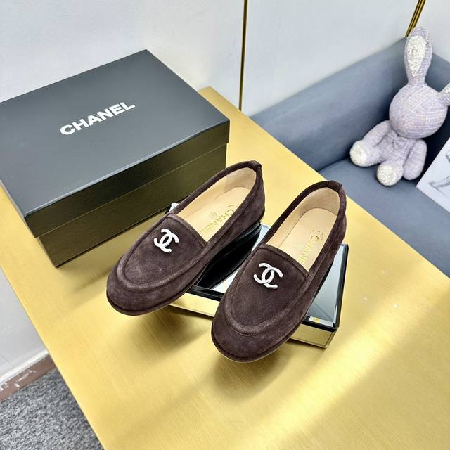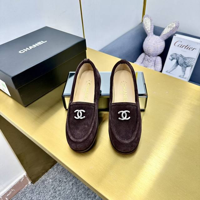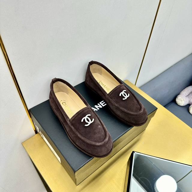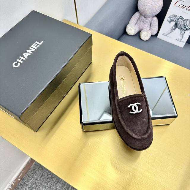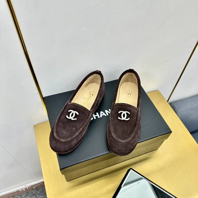 厂价 顶级版本 Chanel 24K秋冬新款毛茸茸乐福鞋 泰迪毛毛鞋 很舒服诶 美拉德棕色还是很适合秋冬的~ 鞋面麂皮 内里皮毛一体 真皮大底 Size:35-