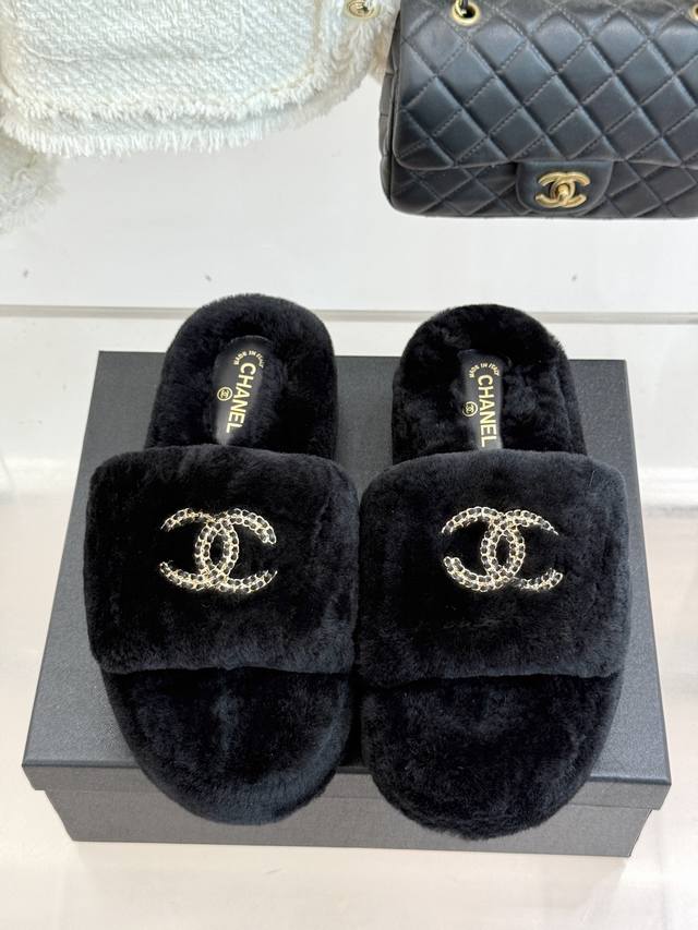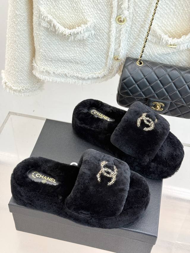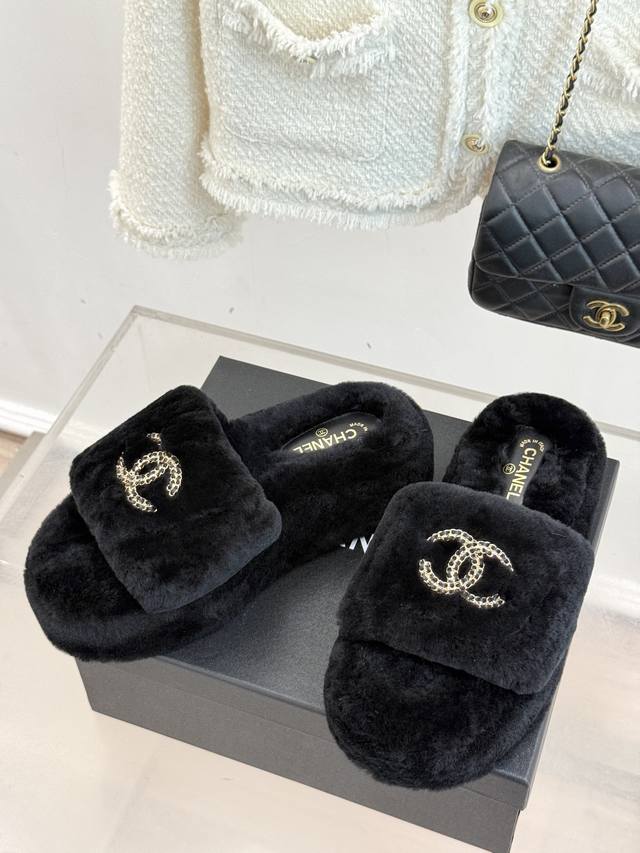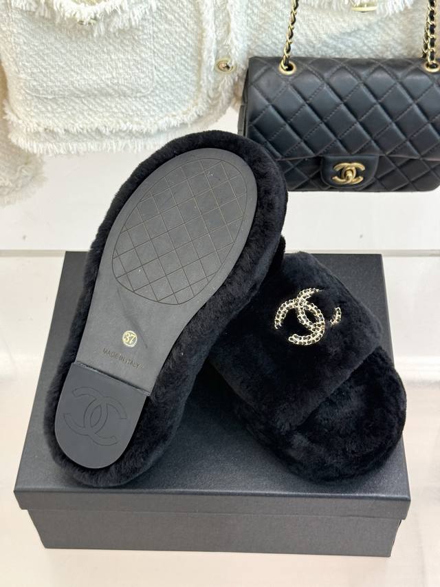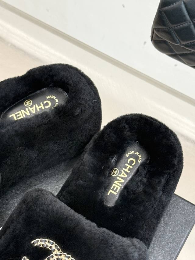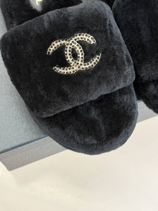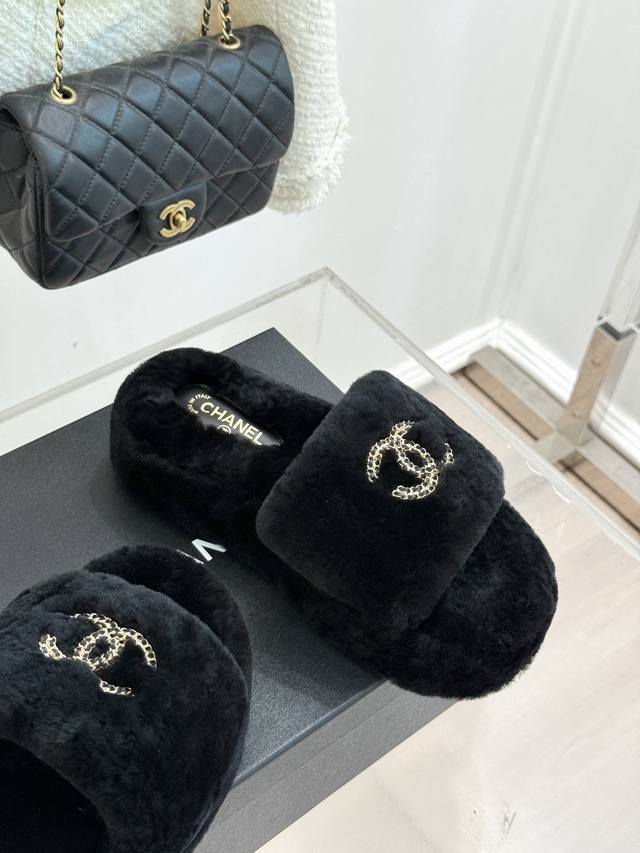 Chane*|小香经典双C链条扣厚底毛拖