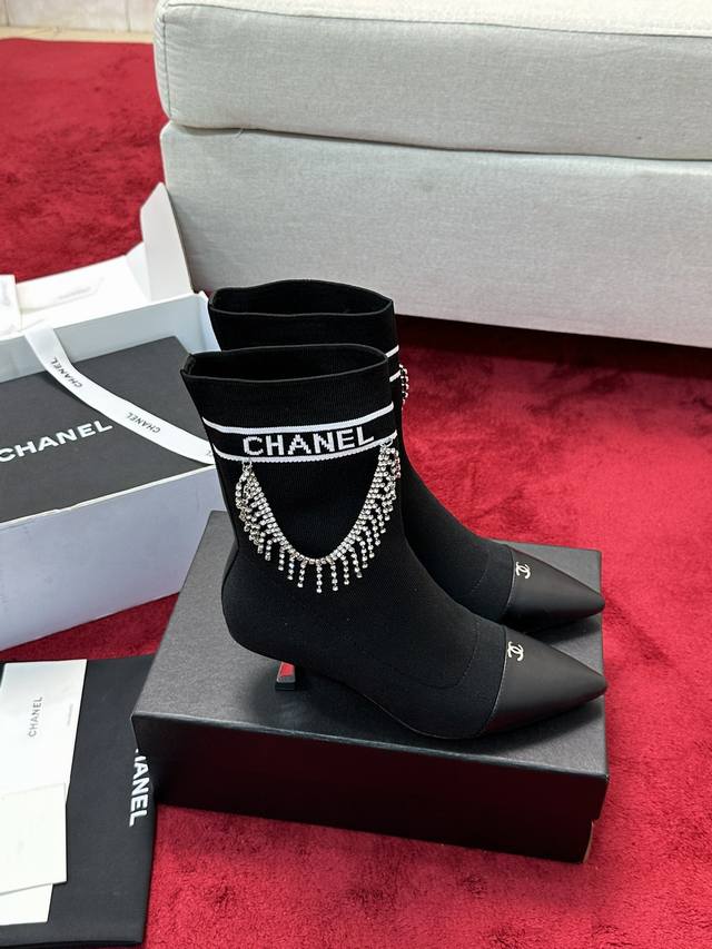 Chane*|小香24B秋冬新品高跟蝴蝶结袜子靴!