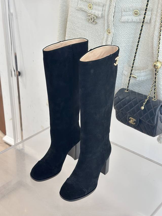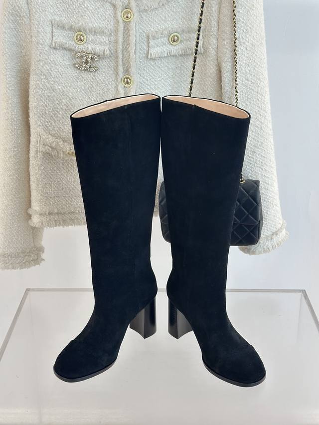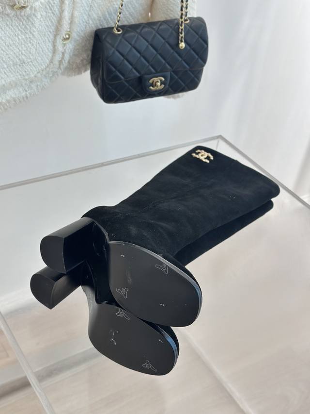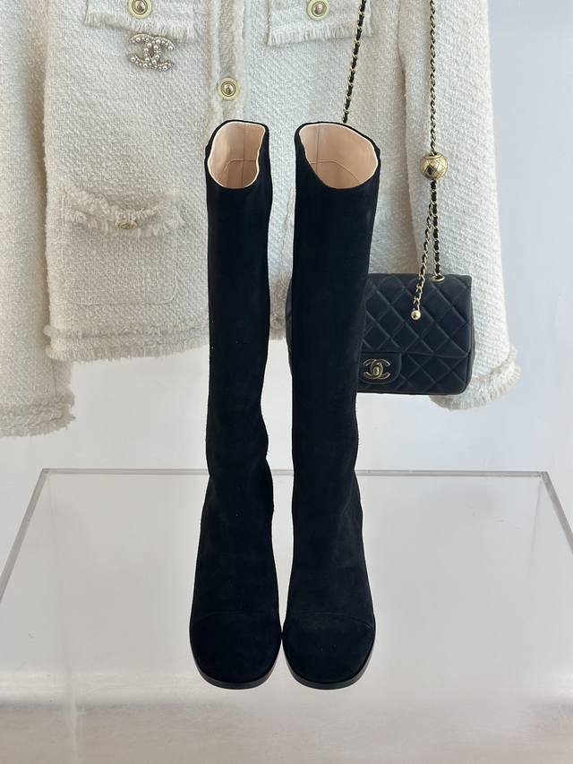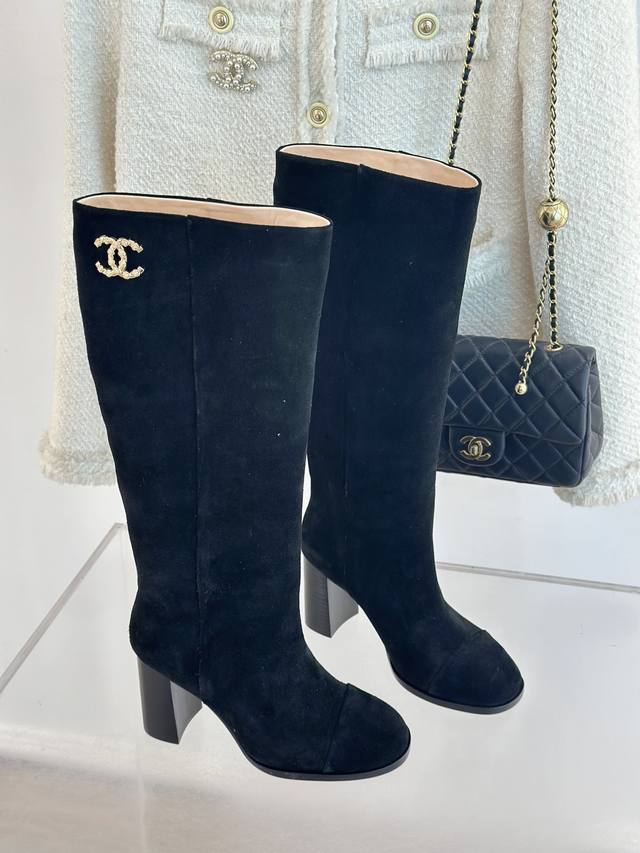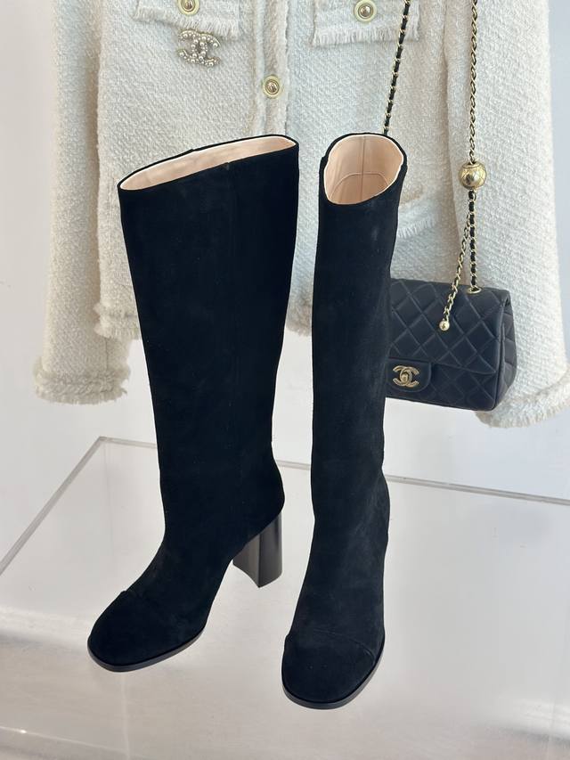 厂价 Chane*|小香24C秋冬新品 双c粗跟长靴系列 鞋面采用进口小牛皮 羊京 内里垫脚都是丝绸羊皮 意大利进口牛皮大底 跟高:8Cm Size:35-39