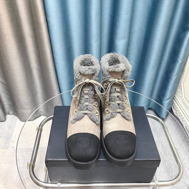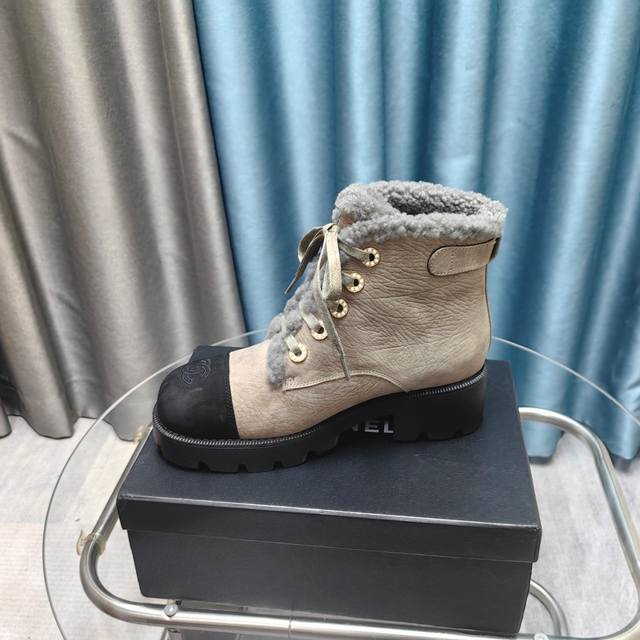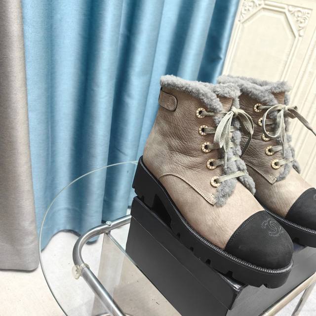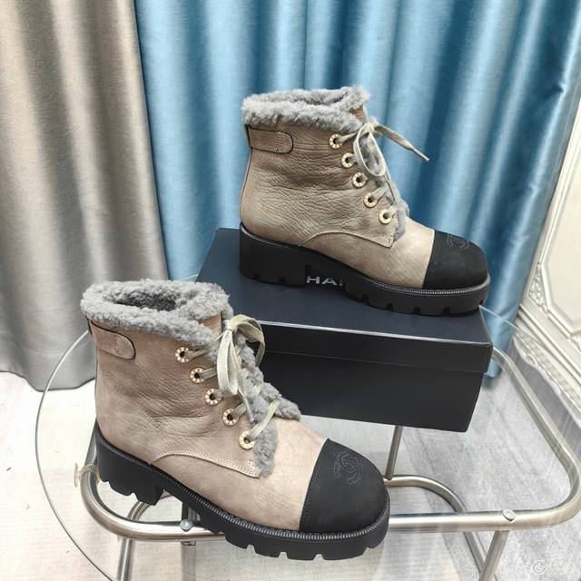 拼色系带雪地靴马丁靴