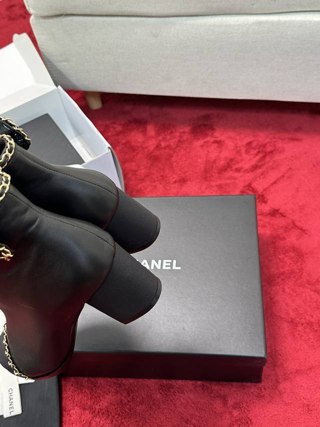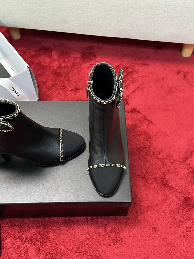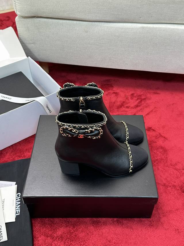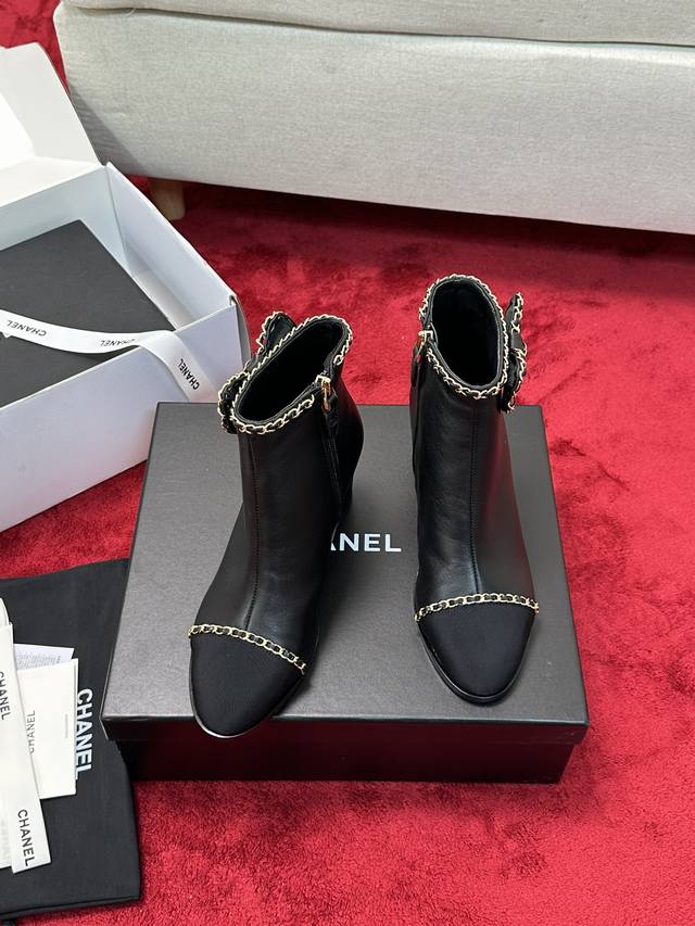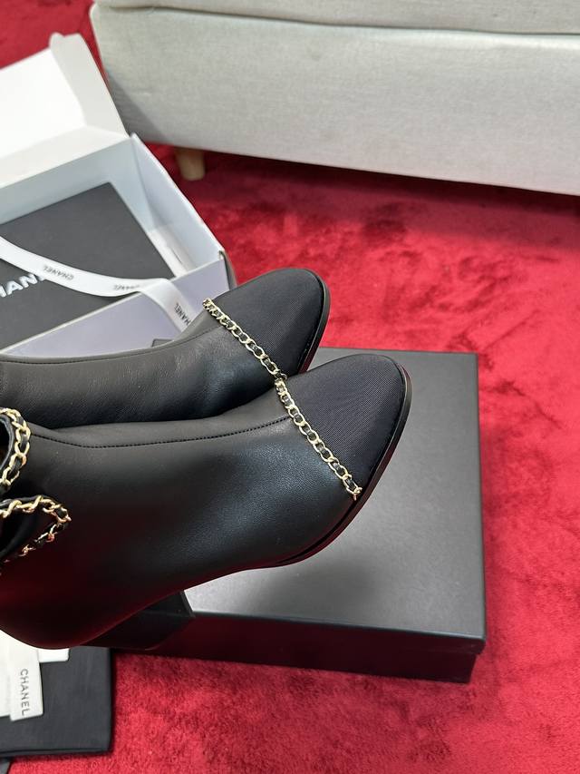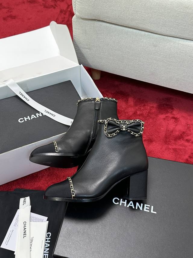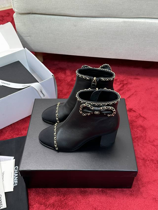Chane*|小香24P链条蝴蝶结粗跟短靴