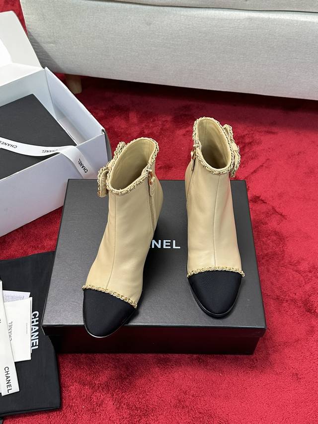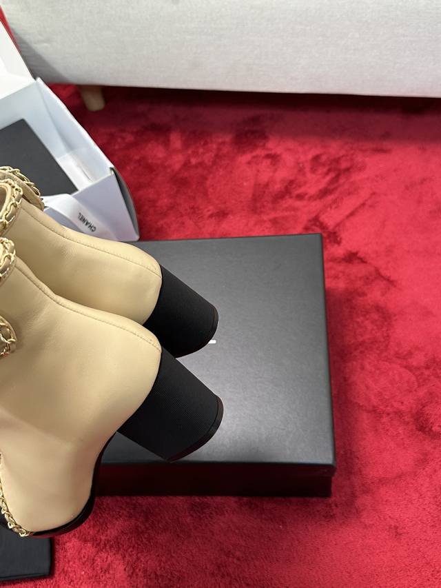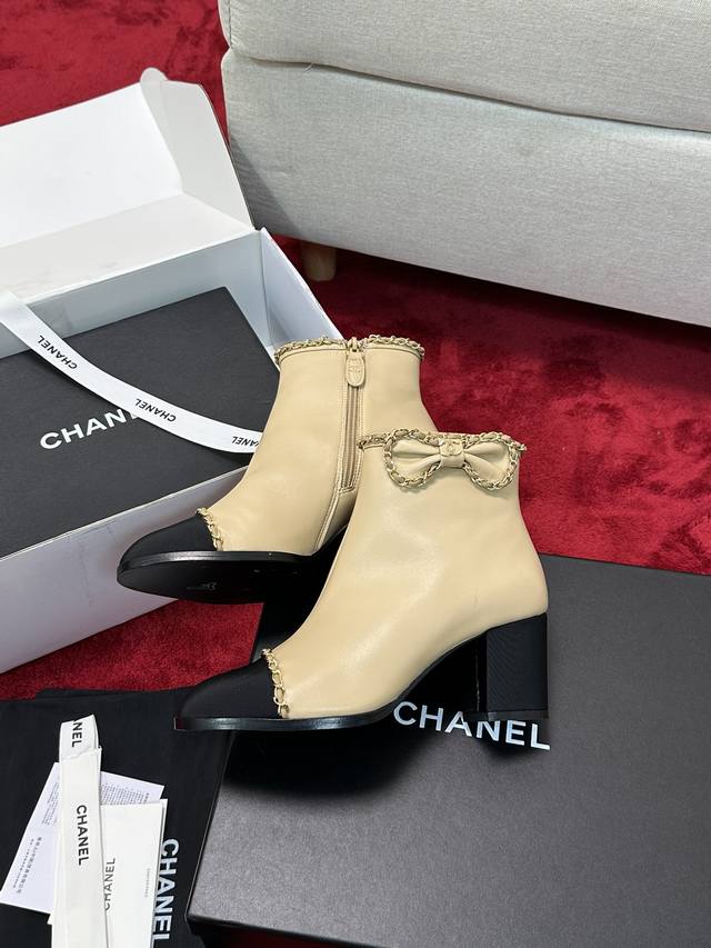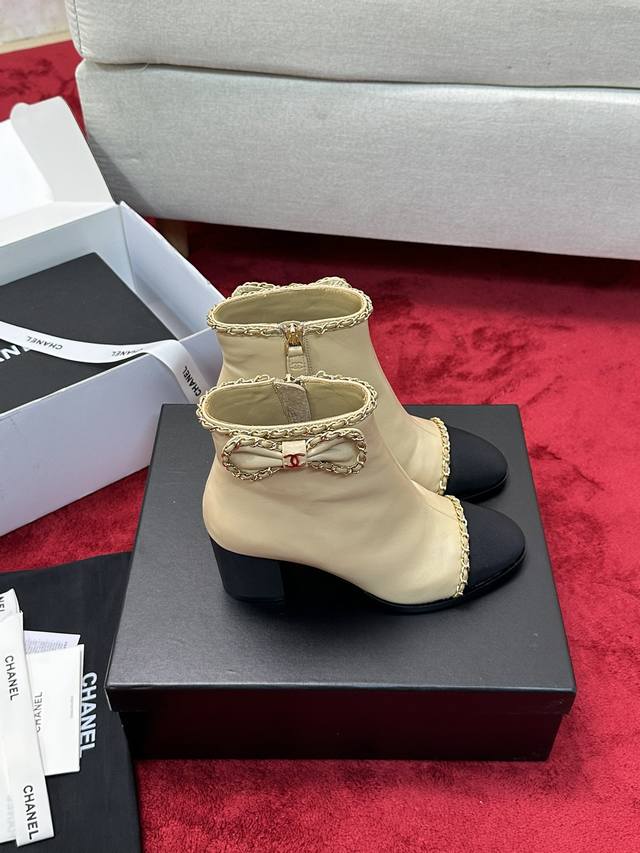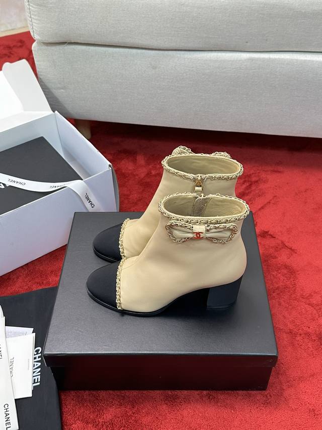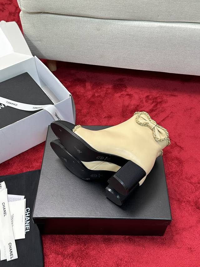 Chane*|小香24P链条蝴蝶结粗跟短靴