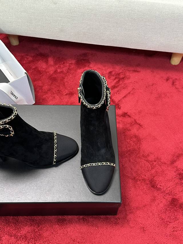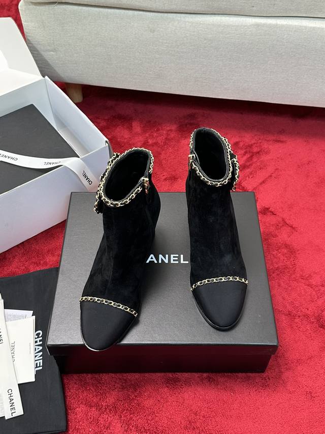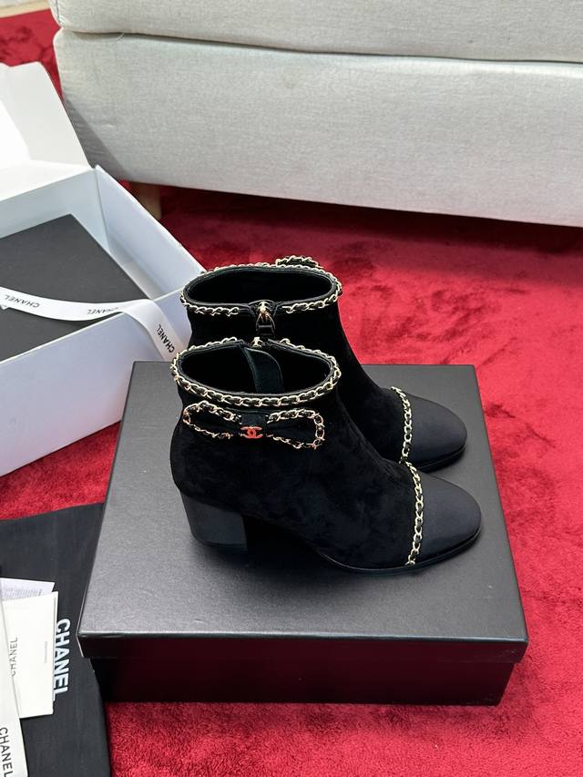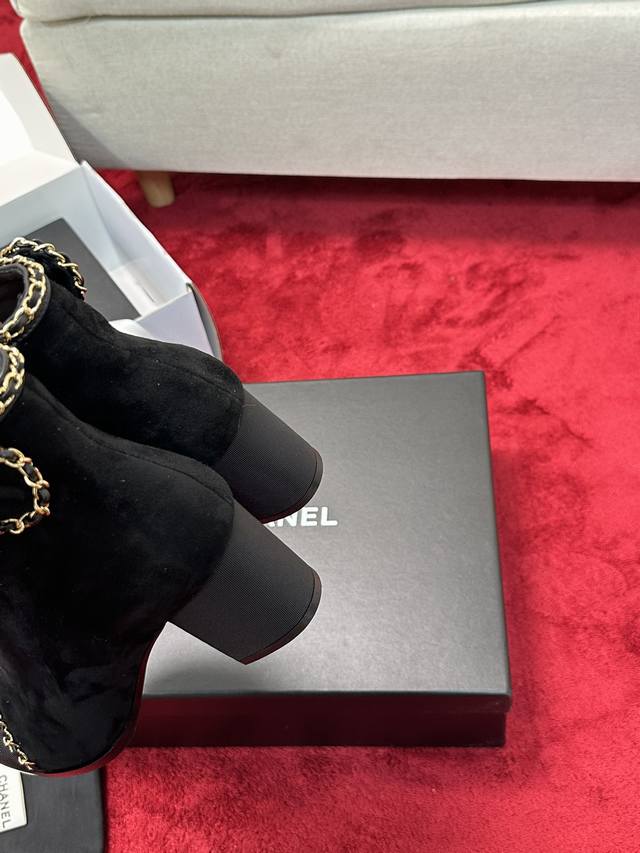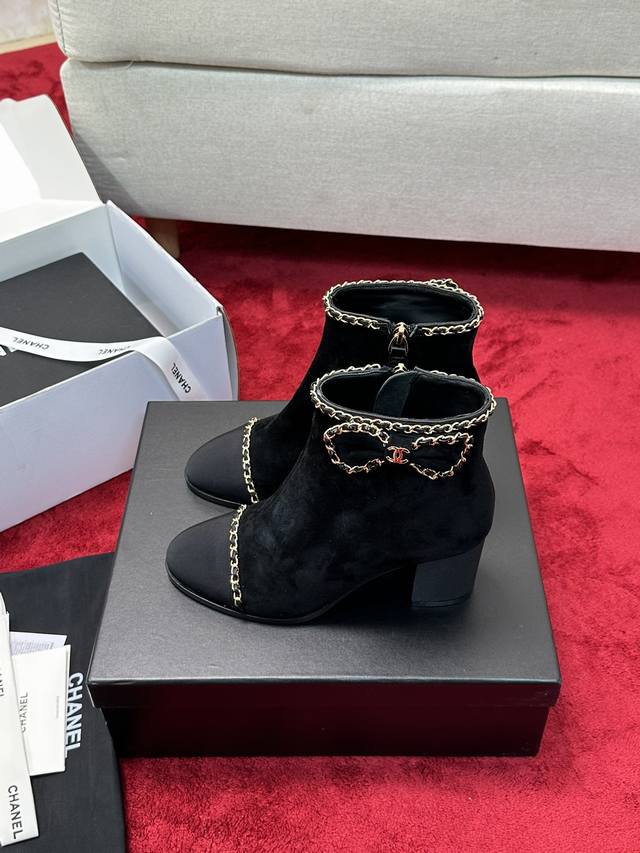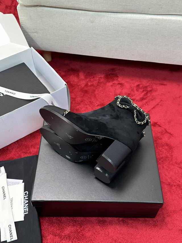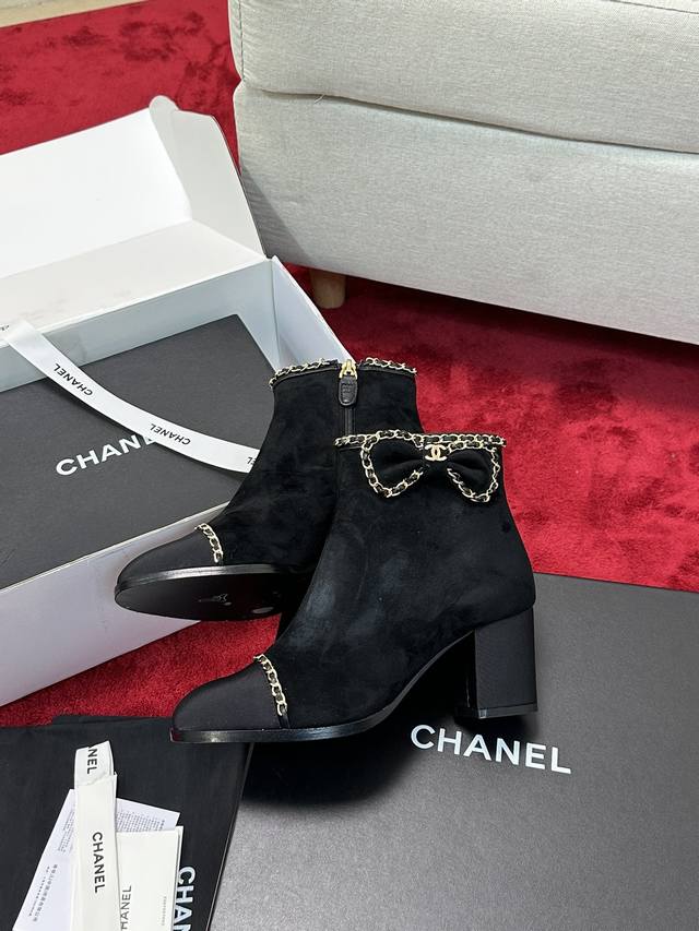 Chane*|小香24P链条蝴蝶结粗跟短靴