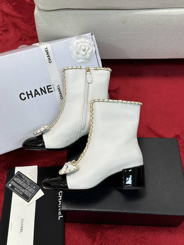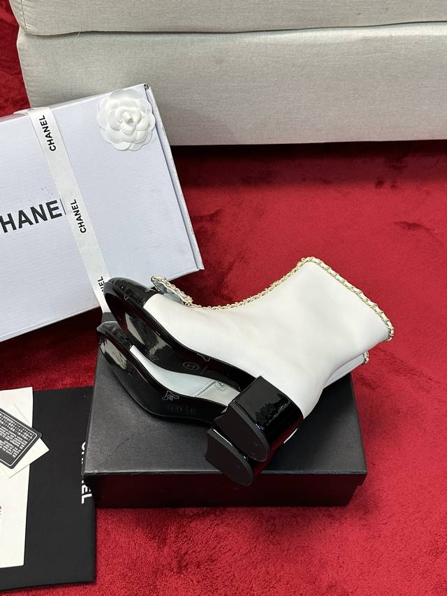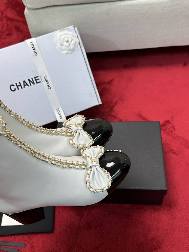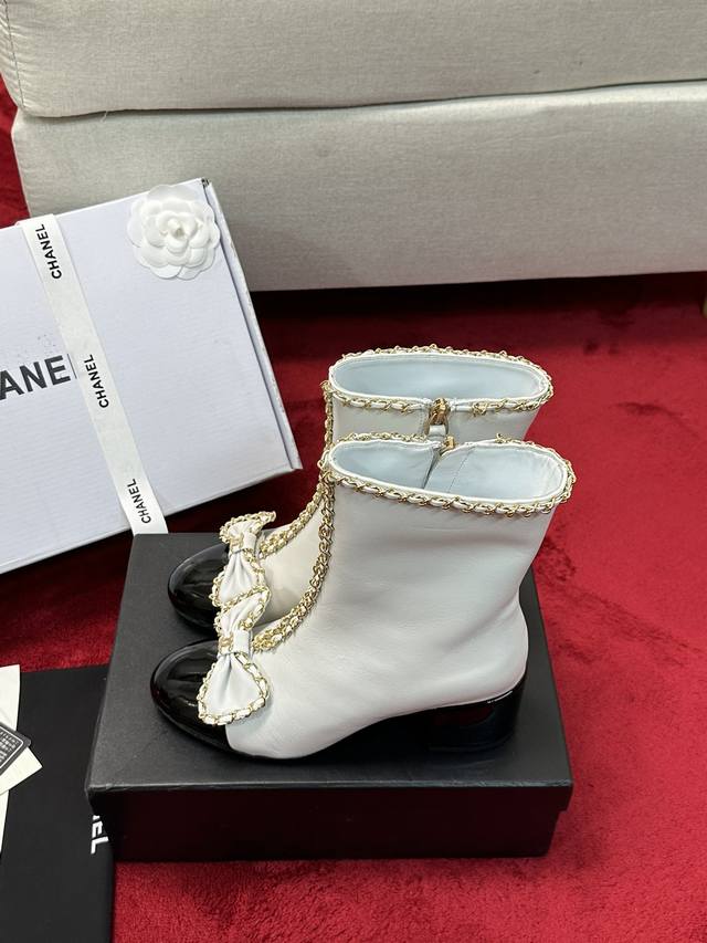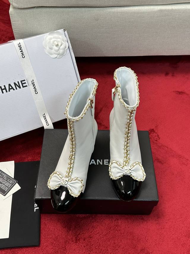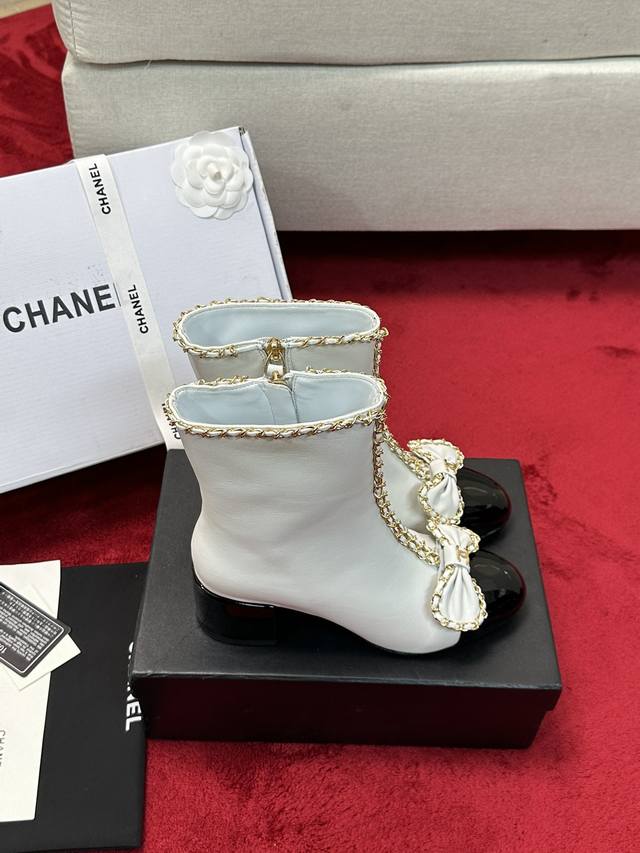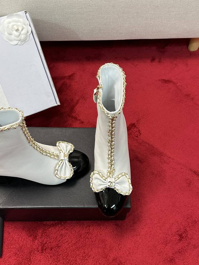 Chane*|小香24P链条蝴蝶结粗跟短靴