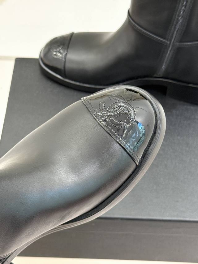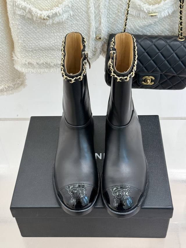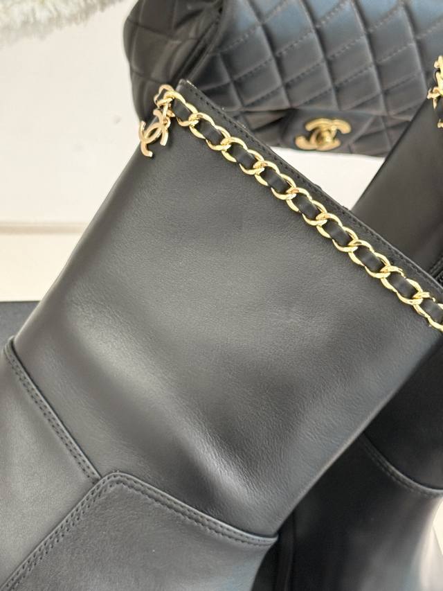 链条元素从靴口蜿蜒而下 与拼色鞋面巧妙融合