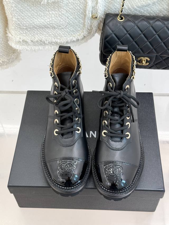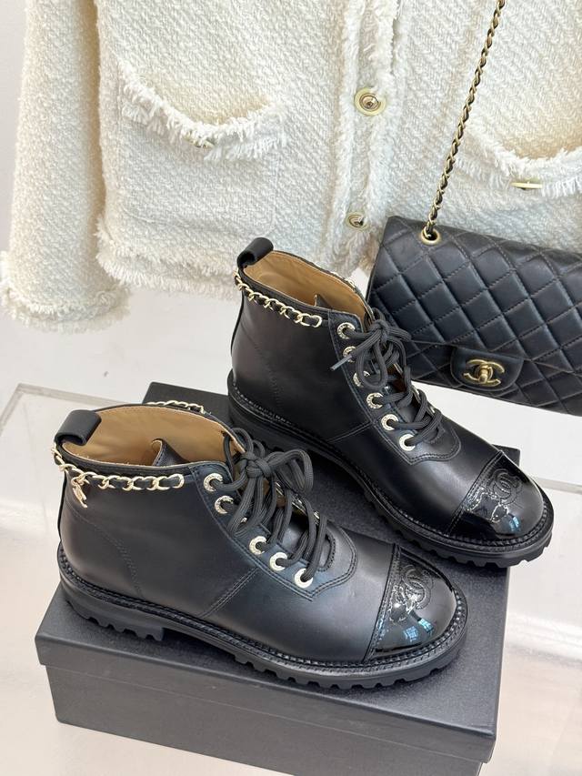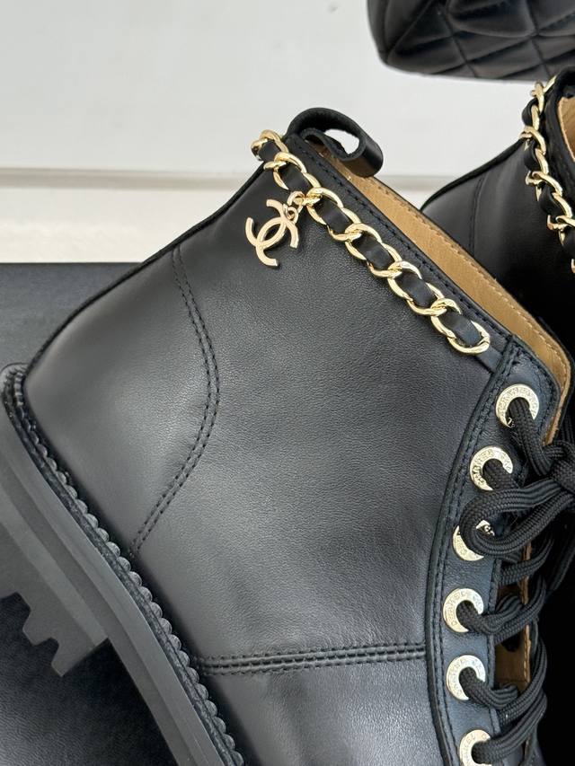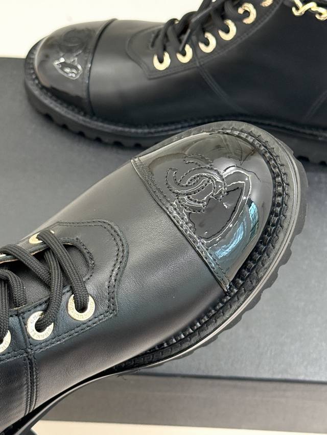 链条元素从靴口蜿蜒而下 与拼色鞋面巧妙融合