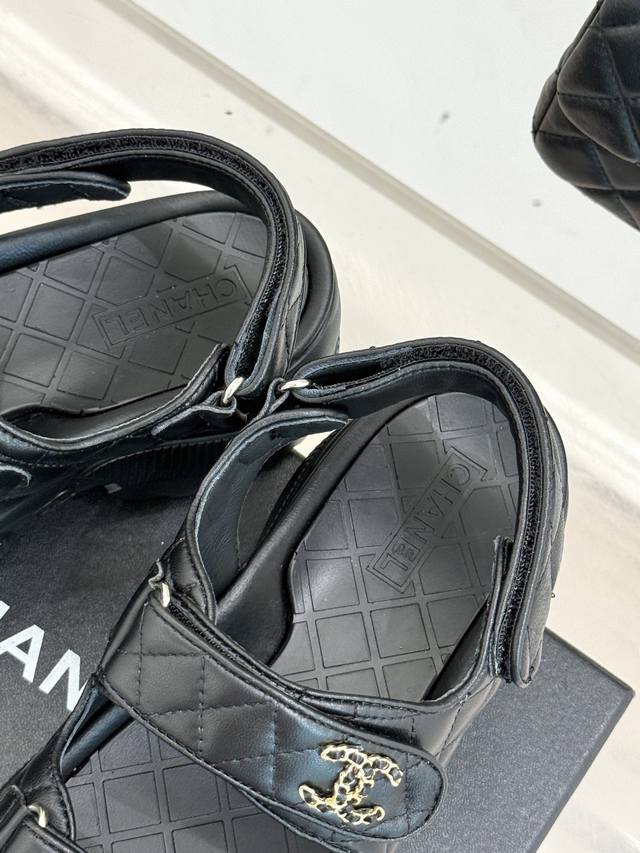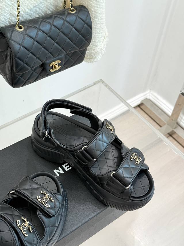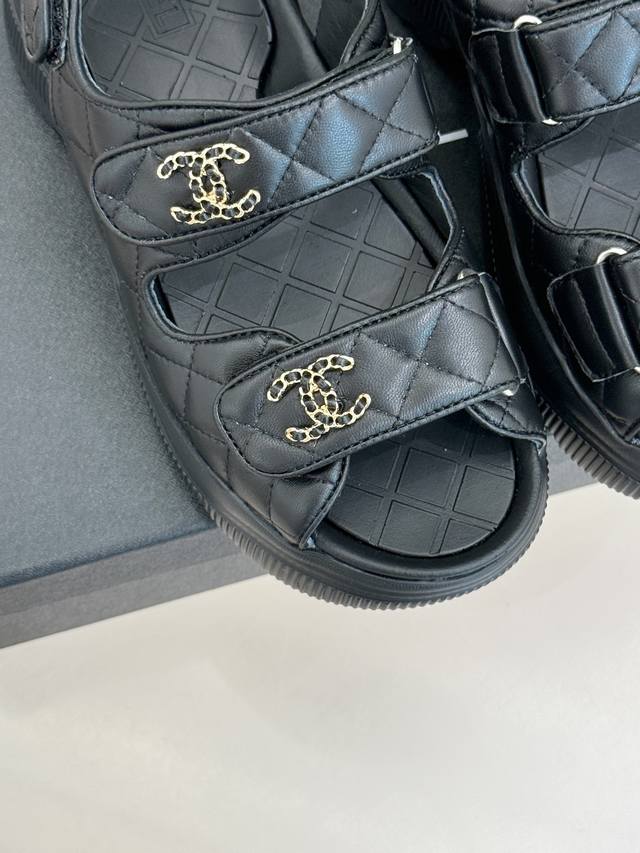 鞋面上标志性的双C链条装饰