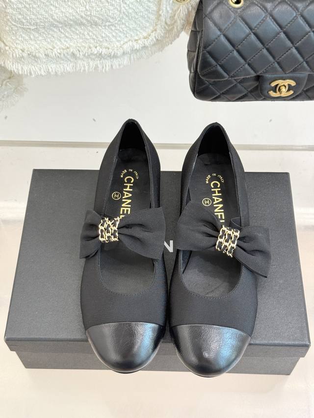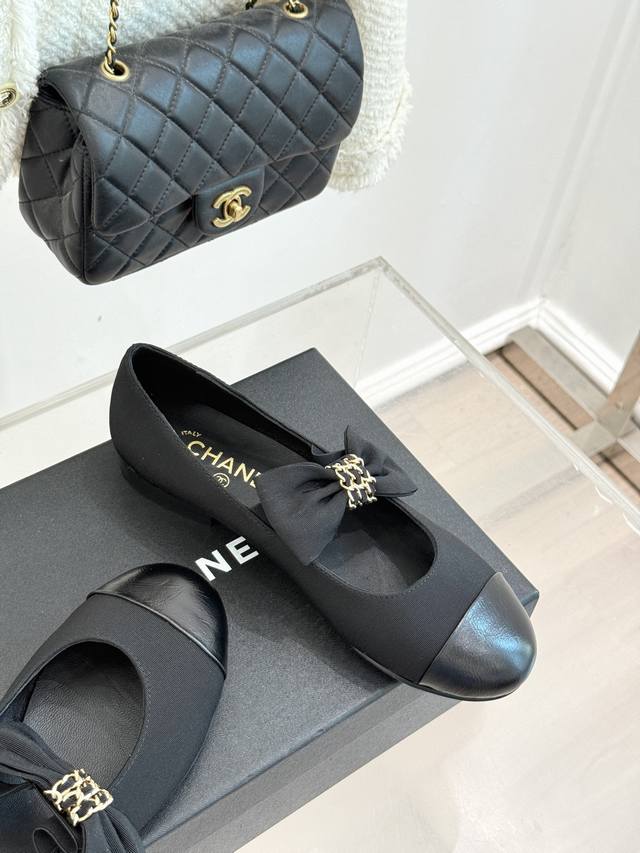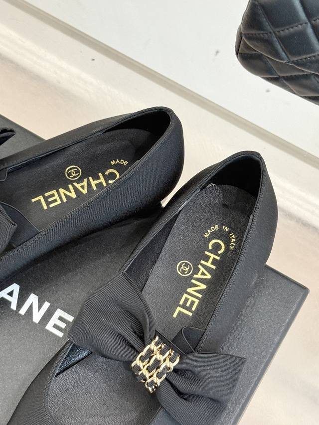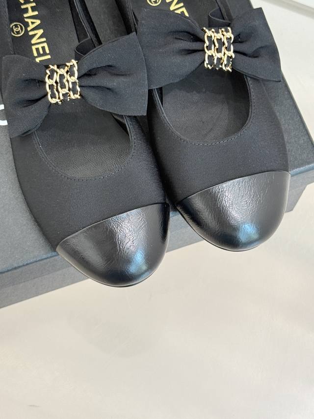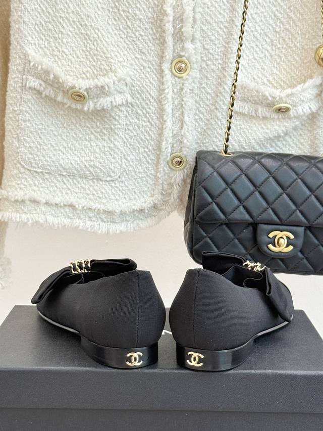脚背处俏皮的蝴蝶结搭配闪耀的金属链条