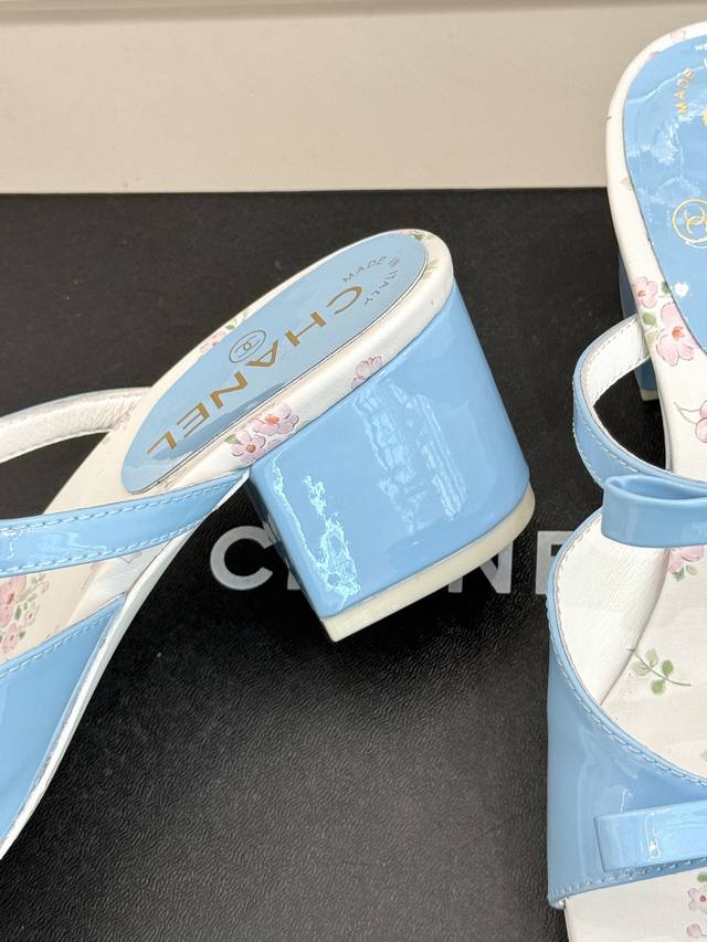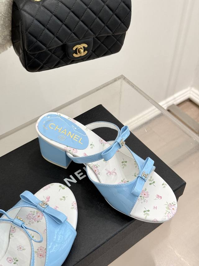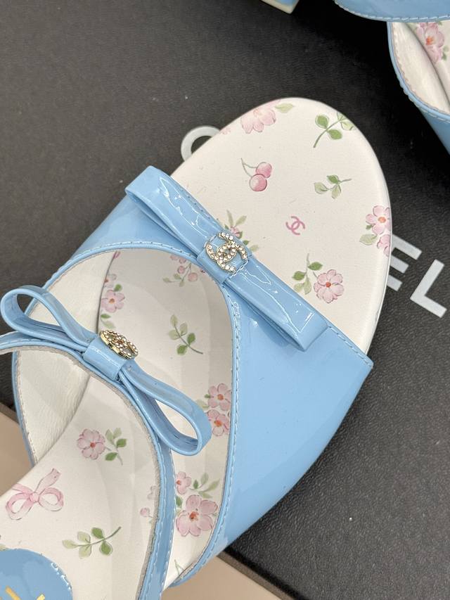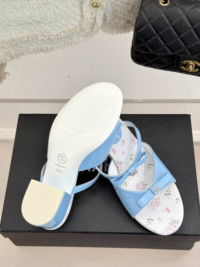 厂价 Chane*|小香25P春夏新品 双C蝴蝶结粗跟凉鞋 夏天一定要入的凉鞋系列 鞋面采用进口小牛漆皮 内里垫脚是丝绸羊皮 意大利进口牛皮大底 码数:35-3