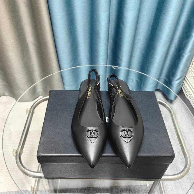 厂价 Chanel 25C新款爱心扣尖头凉鞋