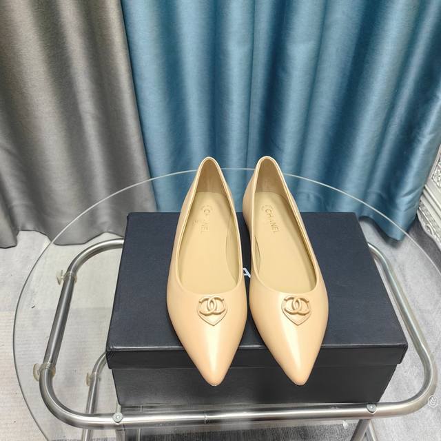 厂价 Chanel 25C新款爱心扣尖头单鞋