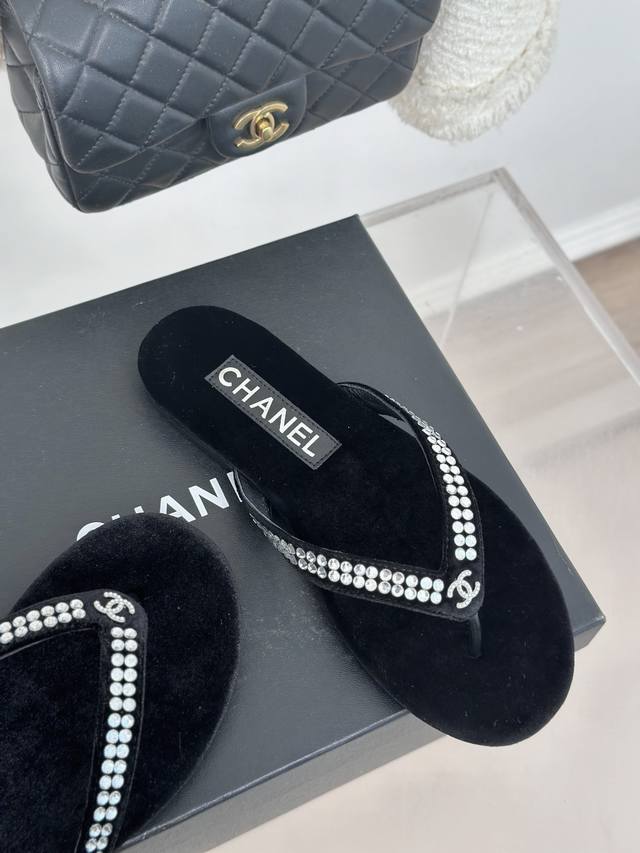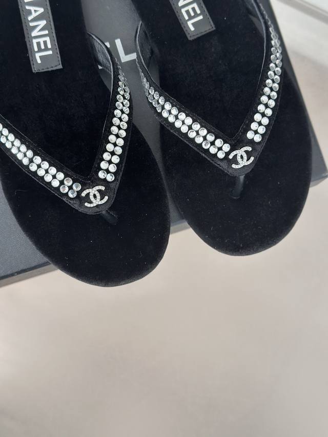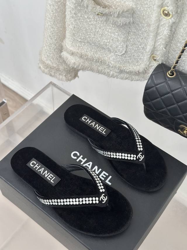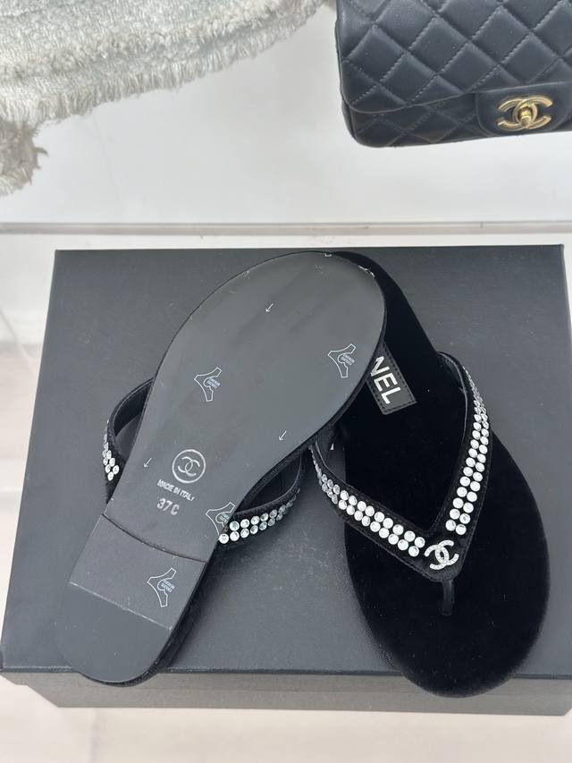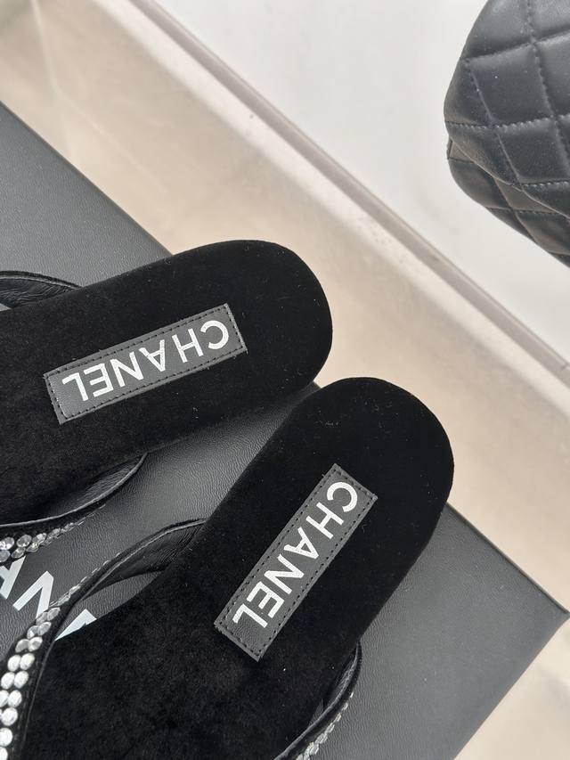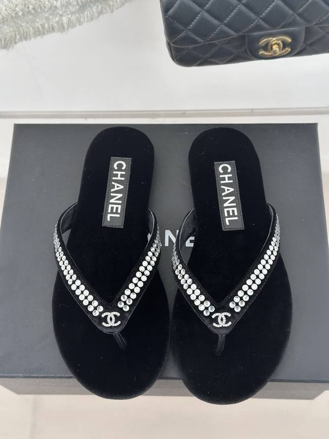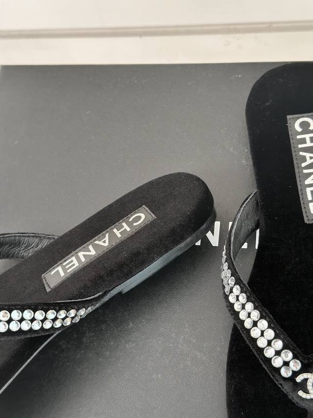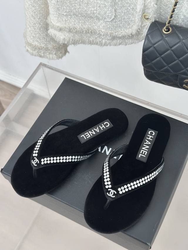 厂价 Chanel Thongs是25C春夏 秀场夹脚人字拖 夏天的人字拖莫名让人感到自由 带上镶嵌了双c水晶珍珠标志 太精致了 也太好看了吧 上脚超秀气显白!