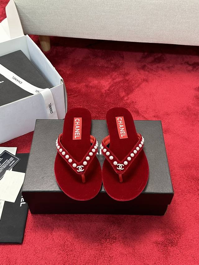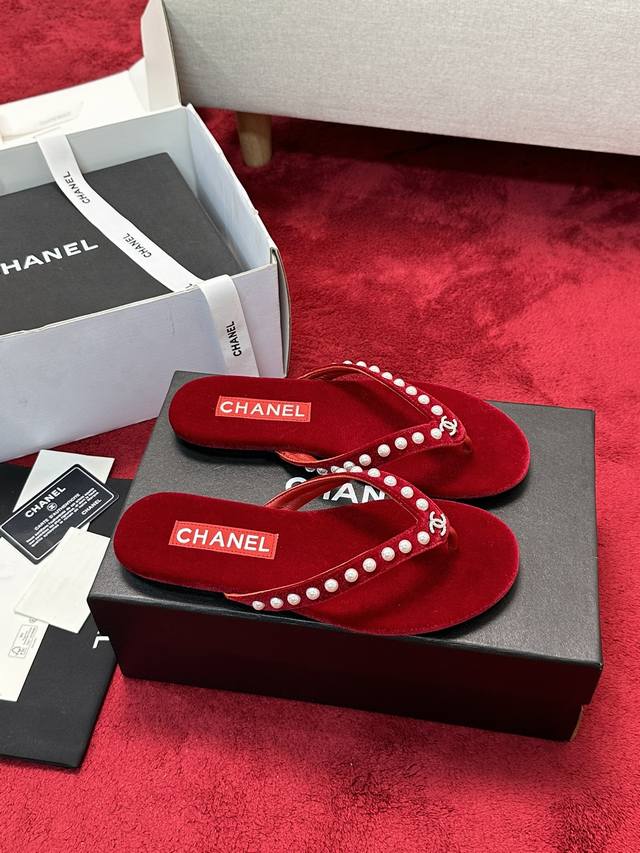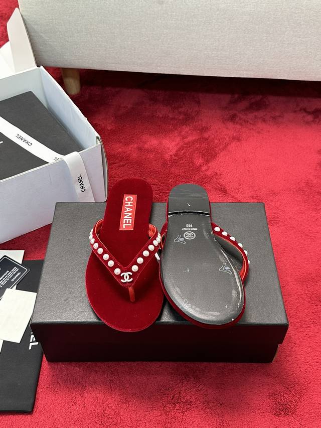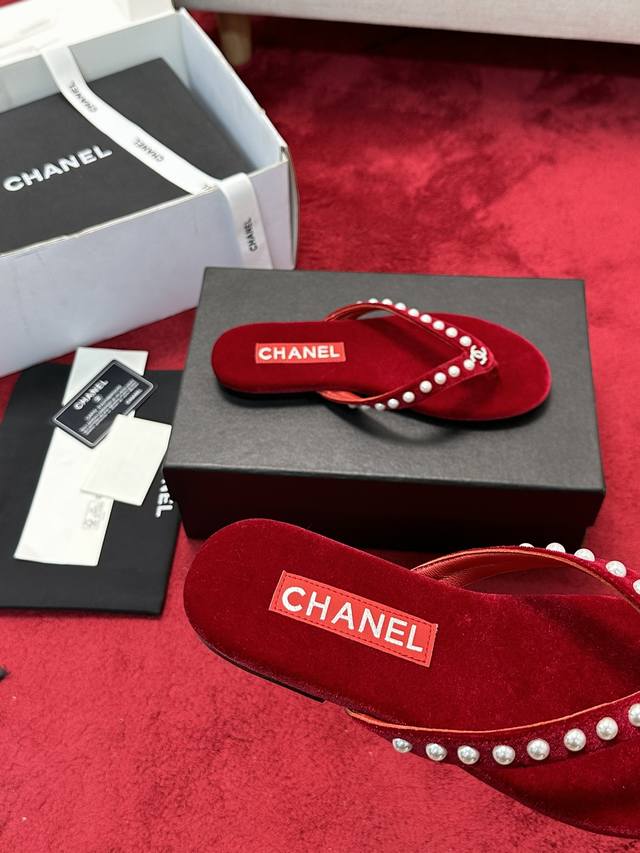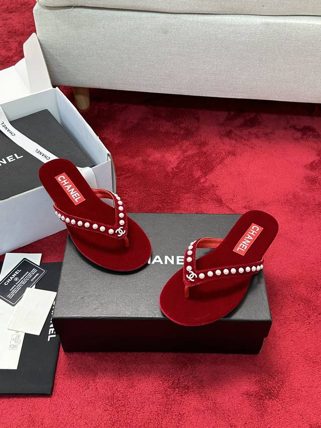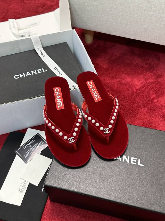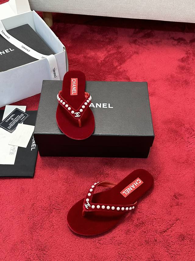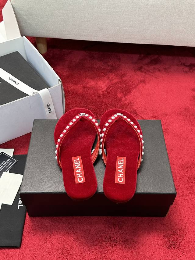 厂价 Chanel Thongs是25C春夏 秀场夹脚人字拖 夏天的人字拖莫名让人感到自由 带上镶嵌了双c水晶珍珠标志 太精致了 也太好看了吧 上脚超秀气显白!