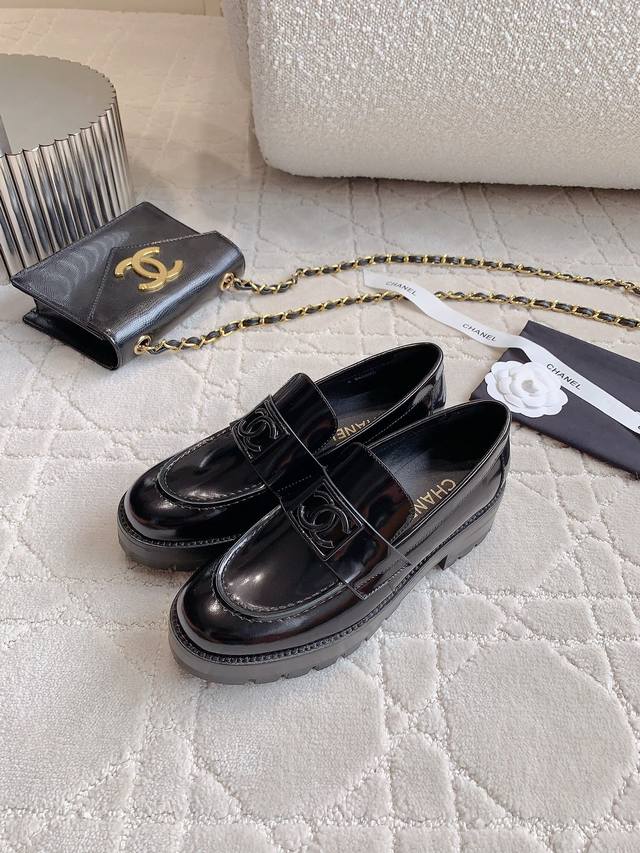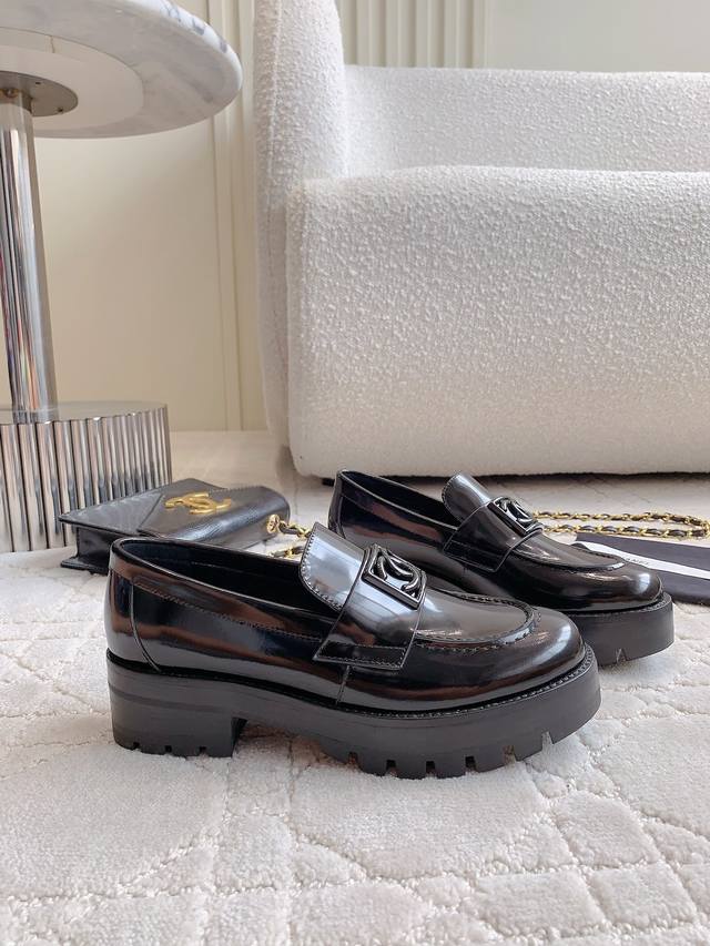 Chane*新款厚底乐福鞋 双c扣装饰经典百搭 各种穿搭均可搭配