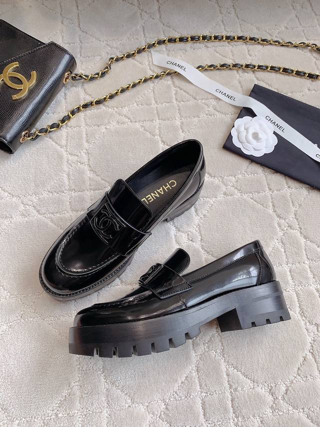 厚底 薄底Chane*新款厚底乐福鞋 双c扣装饰经典百搭 各种穿搭均可搭配鞋面牛皮 内里垫脚羊皮 原版开模橡胶底 意大利真皮大底 尺码35-39 40 41定做