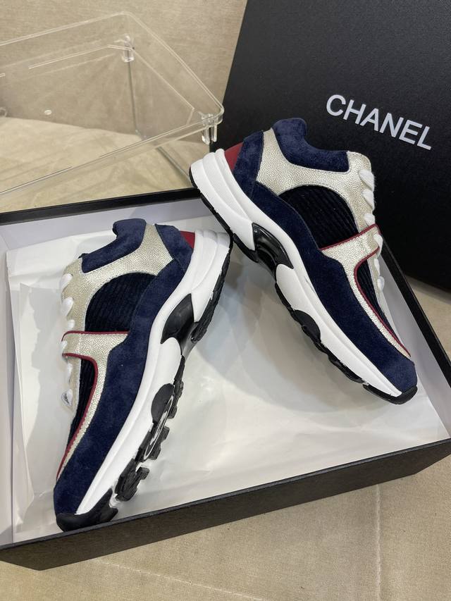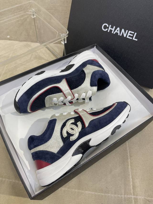 顶级版本 香奈儿 Chanel情侣款 走秀新款拼色休闲运动鞋 原版一比一定制 复杂工艺 可调节组合气质扣 工艺非常麻烦 原代冲孔内里反光材料 鞋面特定水泥纹原版材料 ,后跟定制麂皮 Tpu原版开模组合大底 ,定制 鞋带 工艺非常麻烦 不可以取下来