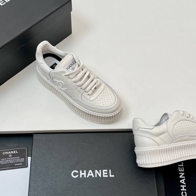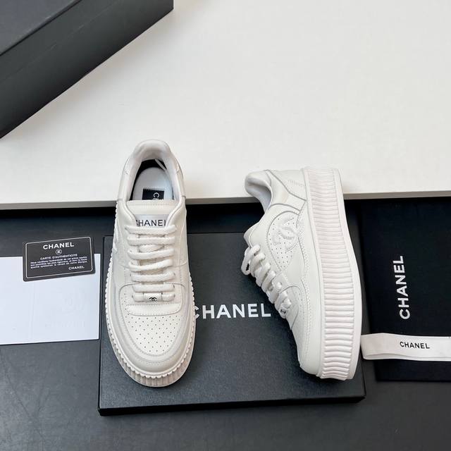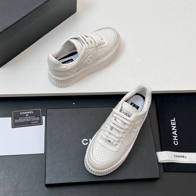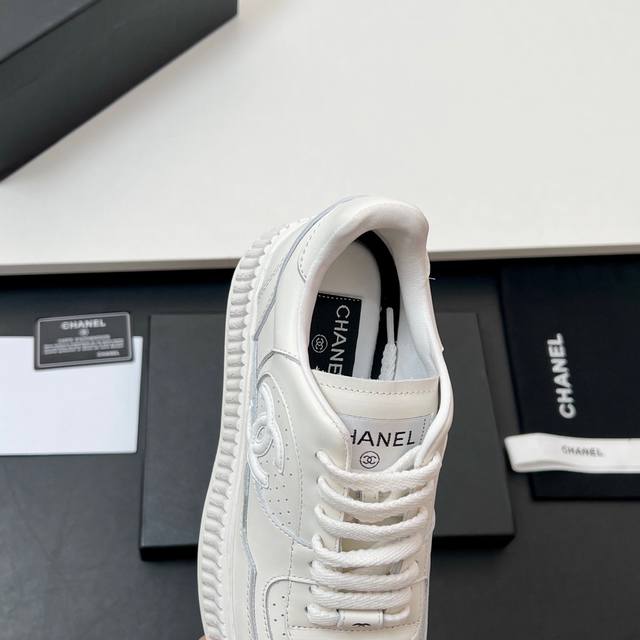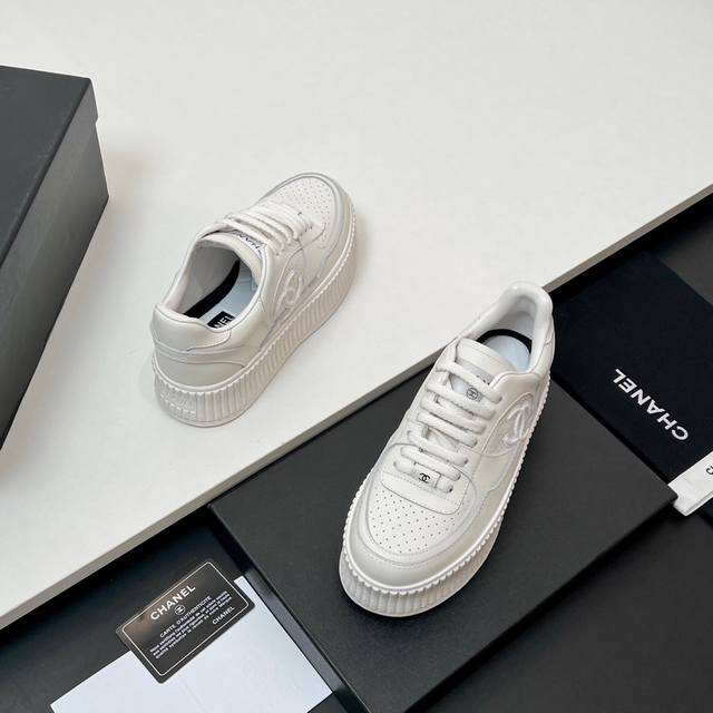 压印Logo 厚底饼干鞋Chanel香奈儿经典熊猫小白鞋休闲运动鞋 滑板鞋