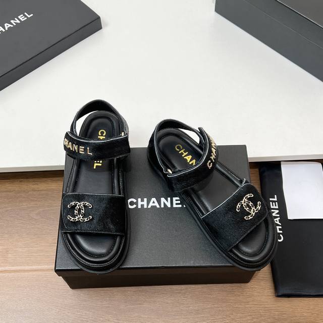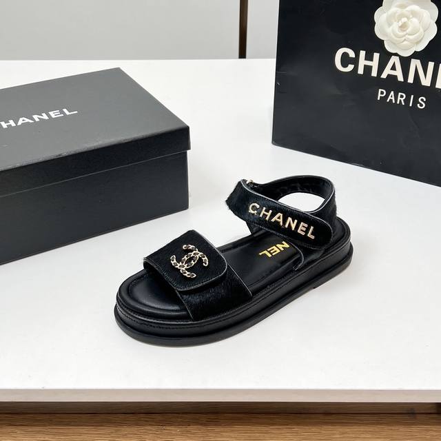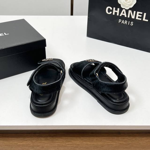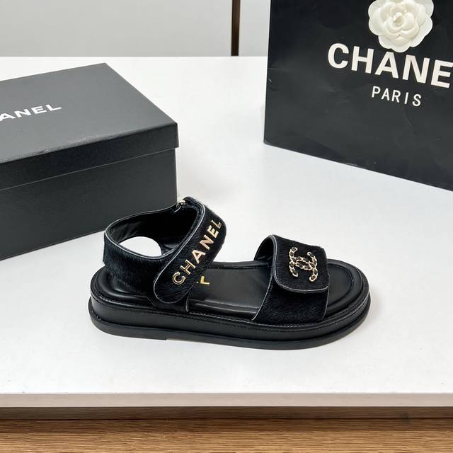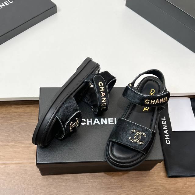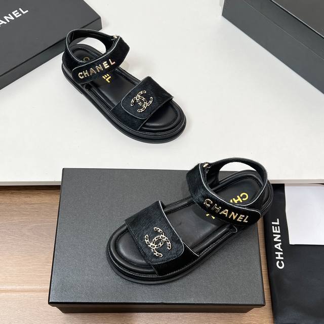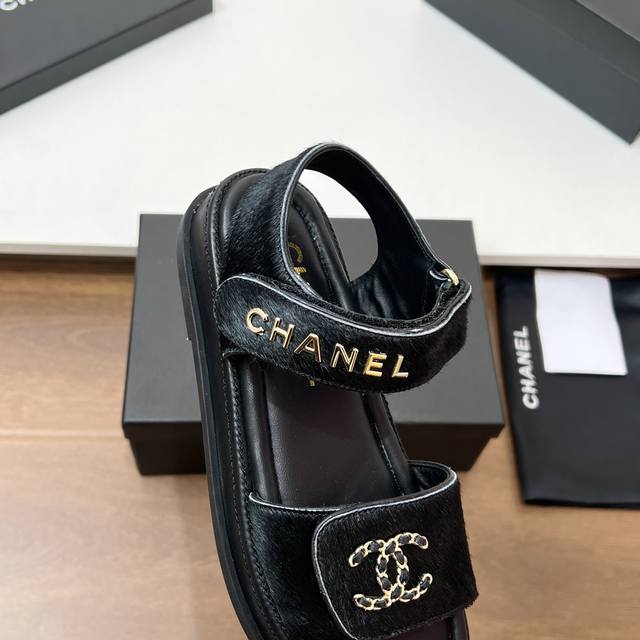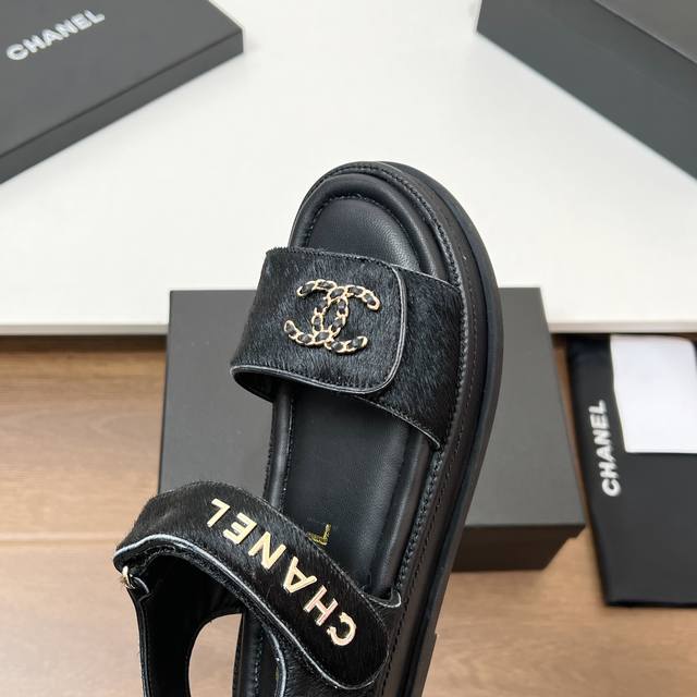 顶级版本!香奈儿 2025春夏新款*马毛魔术贴凉鞋、沙滩鞋