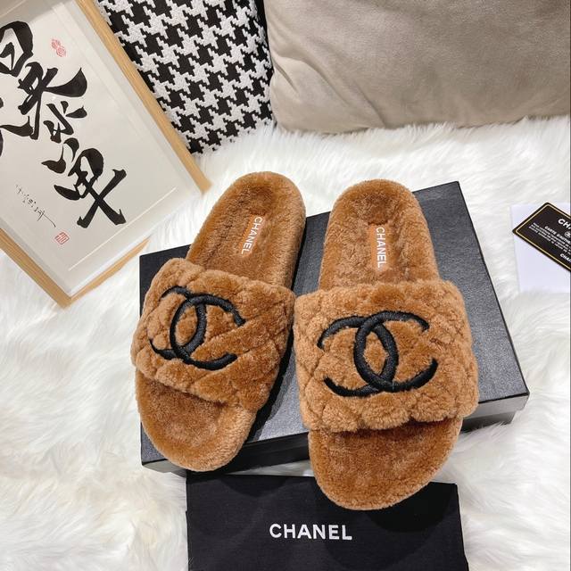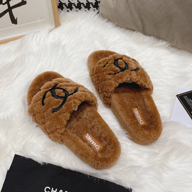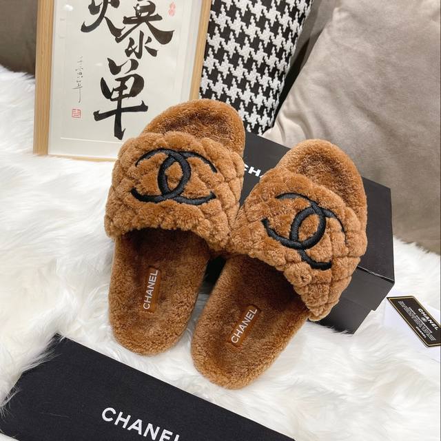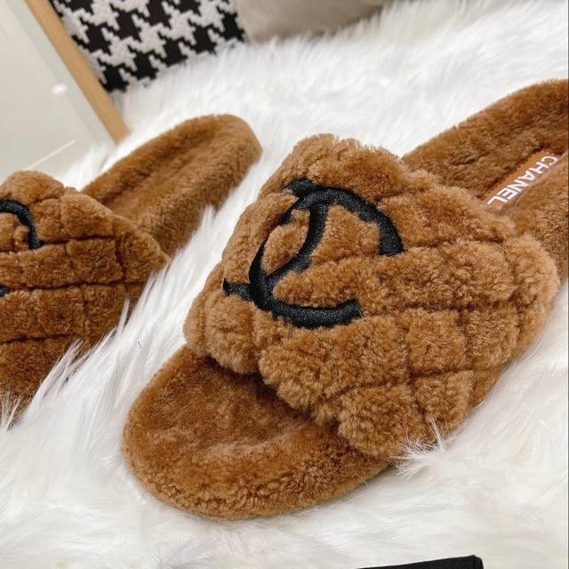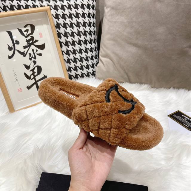 方格3D立体电绣款 香奈儿 秋冬款懒人时尚、优闲风系列潮款香香毛拖,只做真皮毛,专柜品质