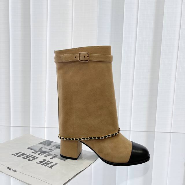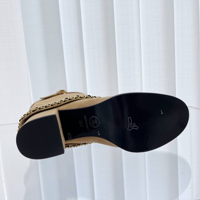 市场顶配版 短款 香奈儿chanel,秋冬新款金属链条粗跟裤管直筒靴 代购级别!又飒又显瘦 裤管设计也太有个性太有范了 非常修饰腿型 出街回头率那是相当,精湛工