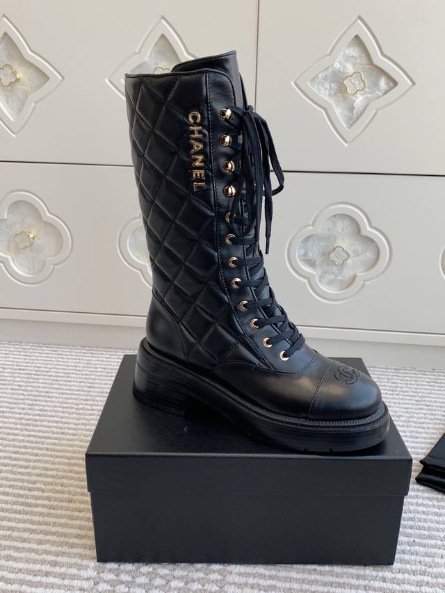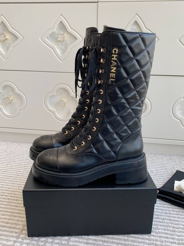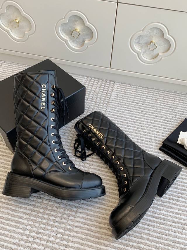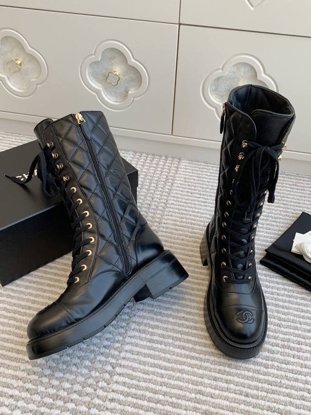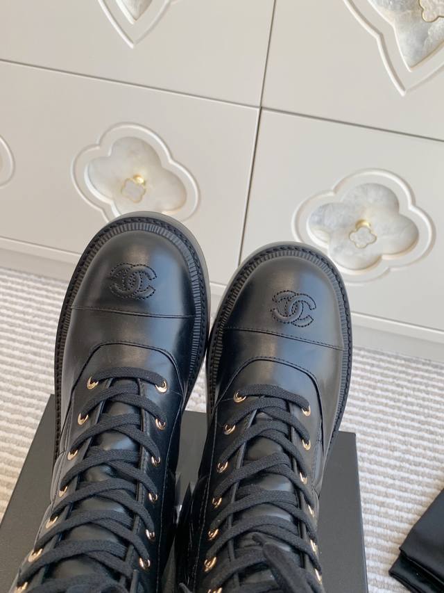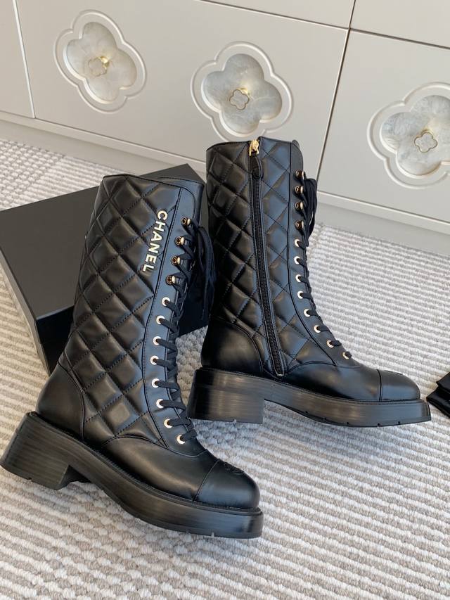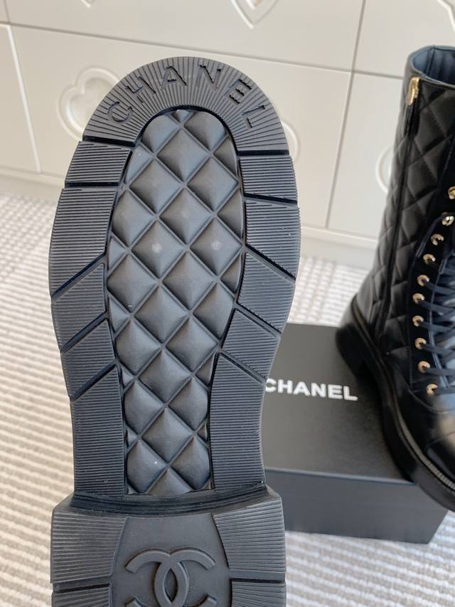 代购级 Chanel 24Ss 早秋 专柜新款马丁靴 天花板顶级品质 这款靴子真的是小个子福星,厚底5Cma 更精致一点 菱格鞋面...