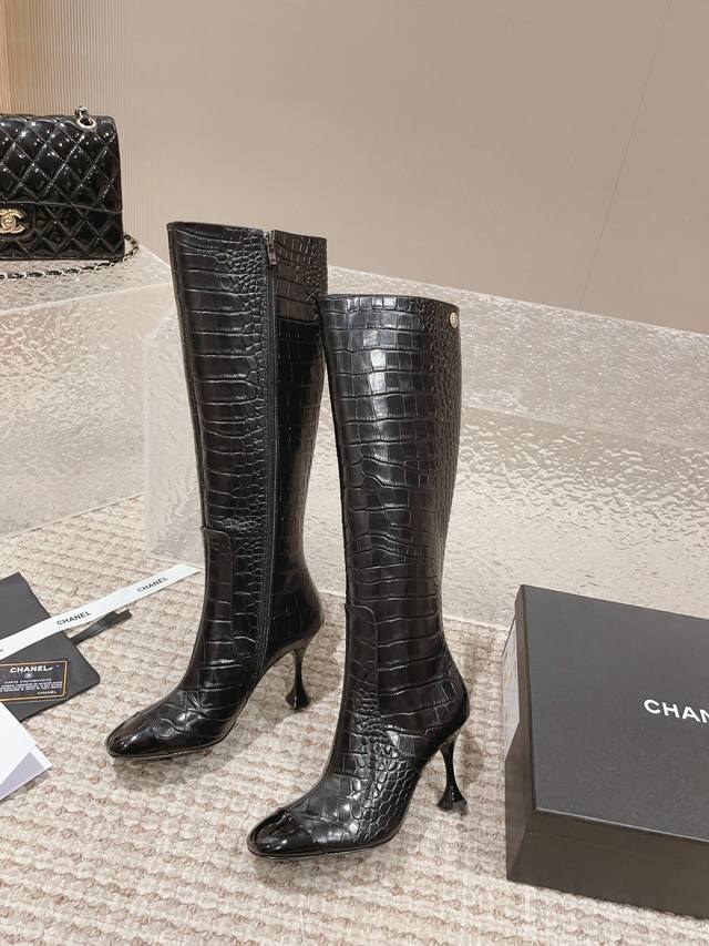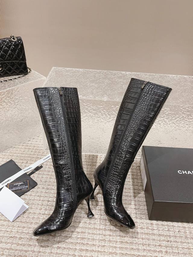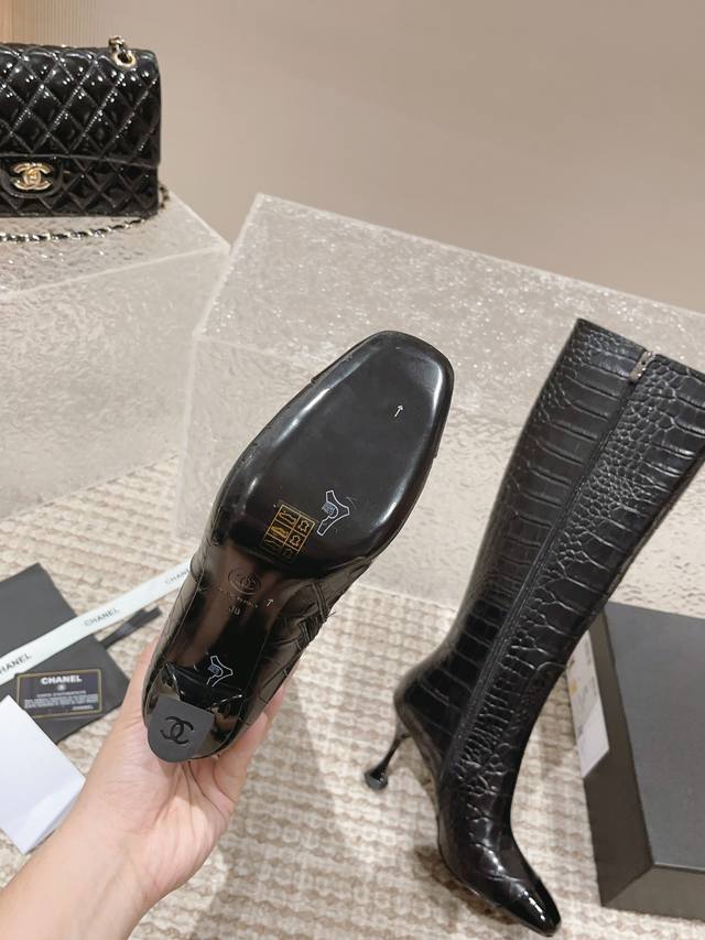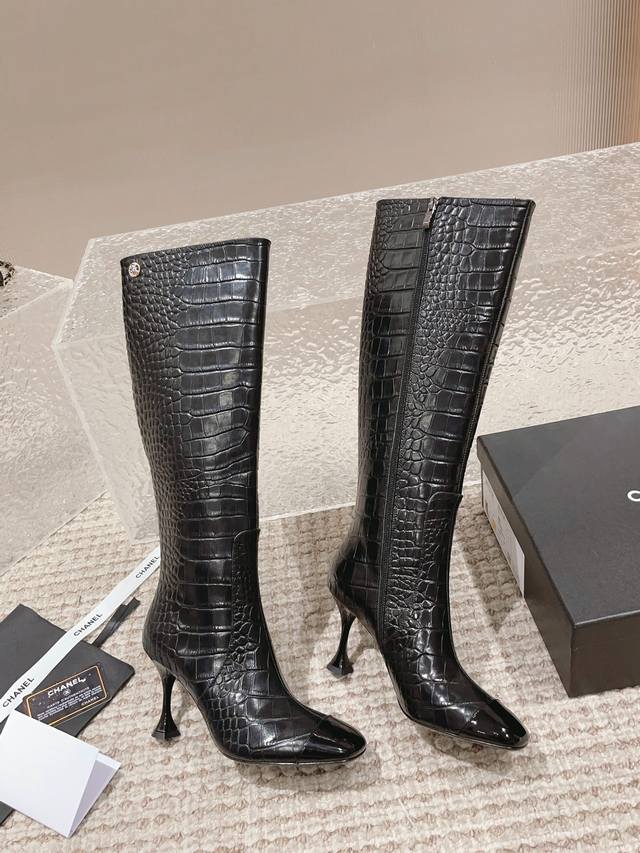 顶级货版本!原版购买、鞋面五金原版开模。精心打造!Chanel这次上新的靴子运用裂纹压制工艺,把不相同的皮料做成了鳄鱼皮纹理。有了金属元素参加的香奈儿,未来感十足呀!冬天是绝逼少不了这双黑色中靴的,很多大衣就是要靠这样一双短靴气场才出的来 !