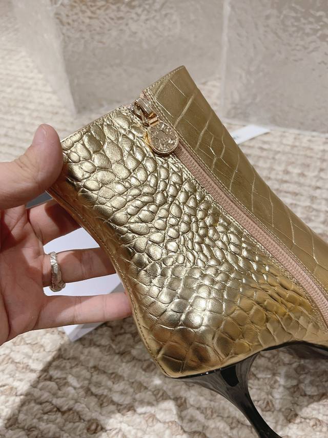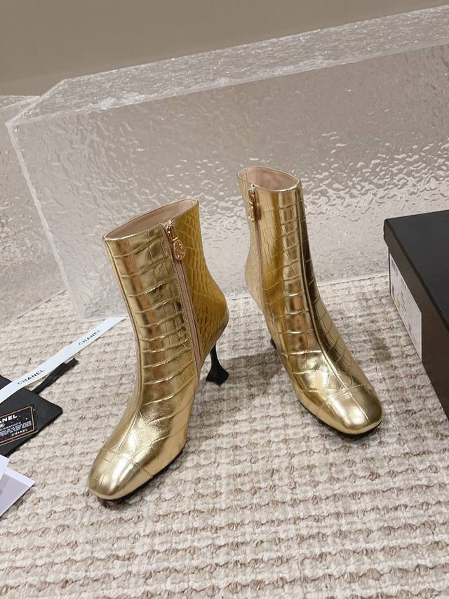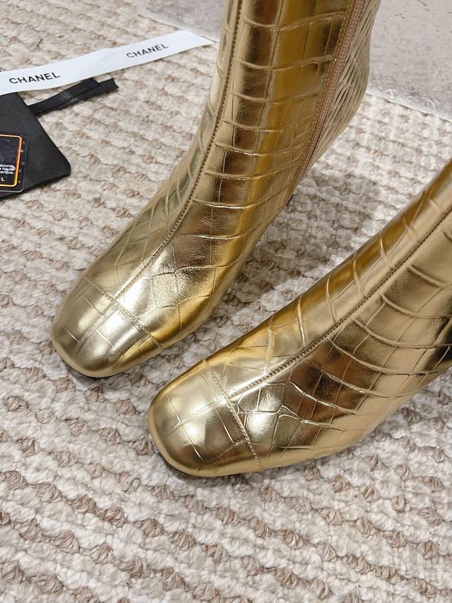 顶级货版本!原版购买、鞋面五金原版开模。精心打造!Chanel这次上新的靴子运用裂纹压制工艺,把不相同的皮料做成了鳄鱼皮纹理。有了金属元素参加的香奈儿,未来感十足呀!冬天是绝逼少不了这双黑色中靴的,很多大衣就是要靠这样一双短靴气场才出的来 !