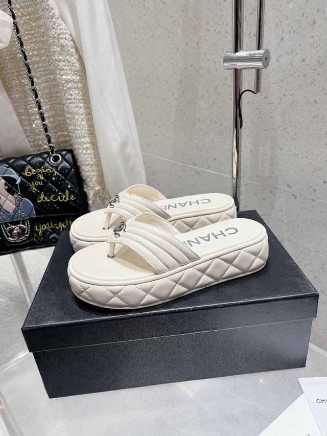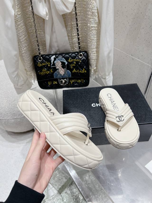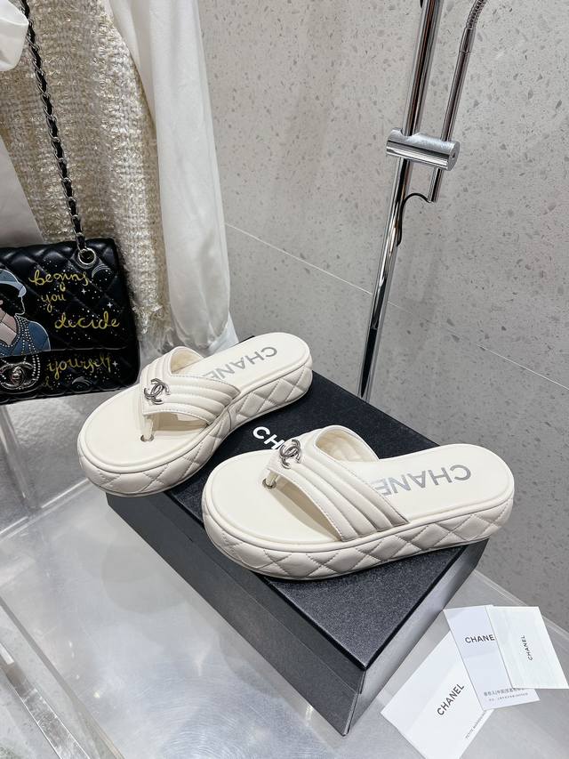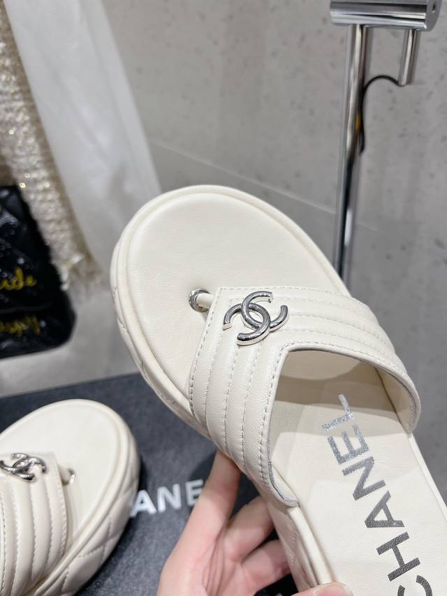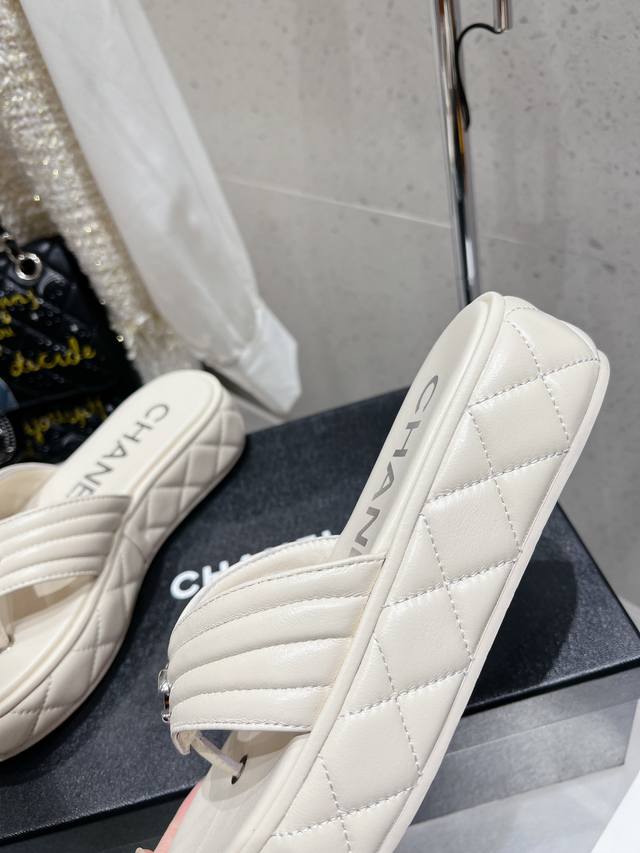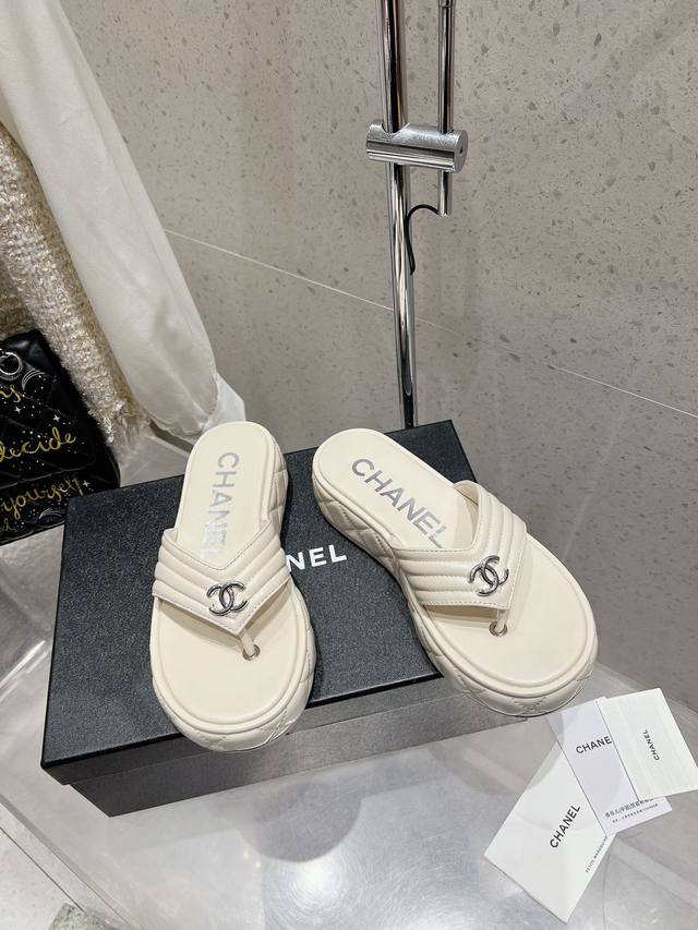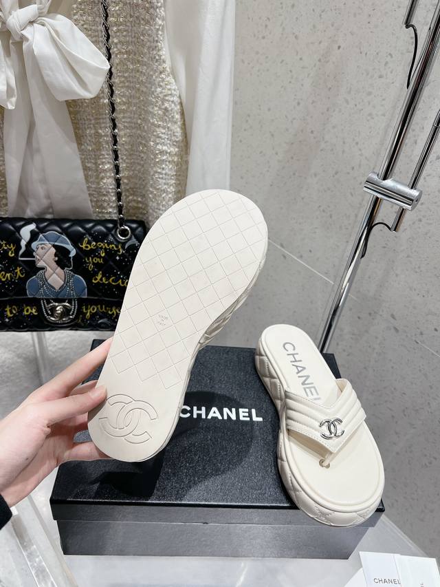 Chanel香奈儿 春夏季经典logo刺绣夹趾厚底凉鞋拖鞋专柜最新款 !原版开发,双层组合大底,原版材料!欢迎对比!旅游度假首选的一款百搭神器,上脚显脚白
