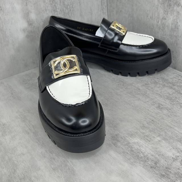 / 新款上架 Chanel香奈儿 小香经典金属双c方扣黑白拼色乐福鞋 原版1:1打造完美楦型,鞋面的设计特别,点缀小香经典五金扣 高级感十足 上脚特别舒服柔软,宽脚