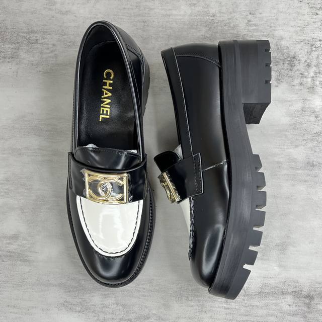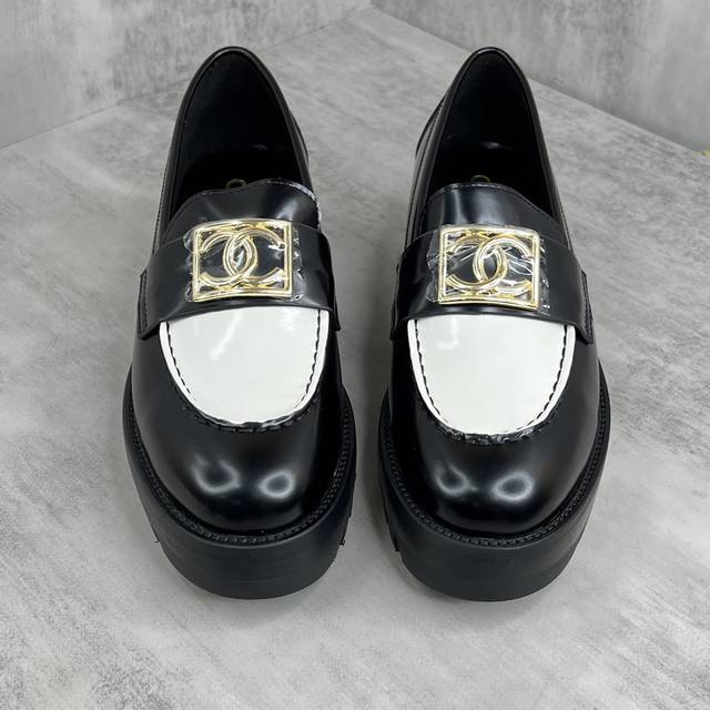 新款上架 Chanel香奈儿 小香经典金属双c方扣黑白拼色乐福鞋 原版1:1打造完美楦型,鞋面的设计特别,点缀小香经典五金扣 高级感十足 上脚特别舒服柔软,宽脚也不怕,不会显脚肥,好看又舒适,鞋面采用原版定制小牛皮 内里混种羊皮 跟高:2Cm 意大利进口真皮大底 码数:35-40 40定制