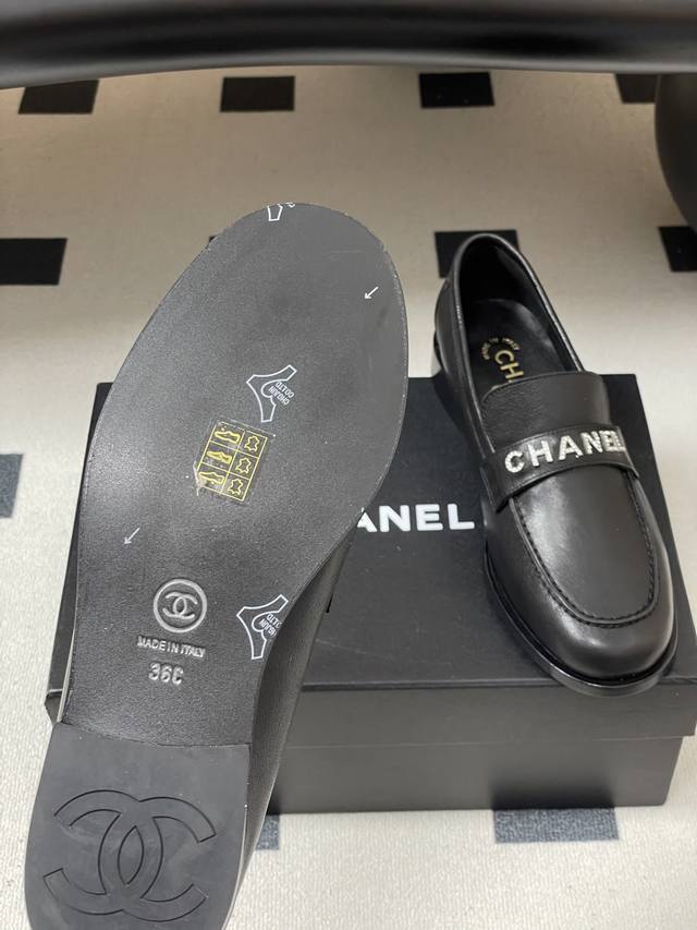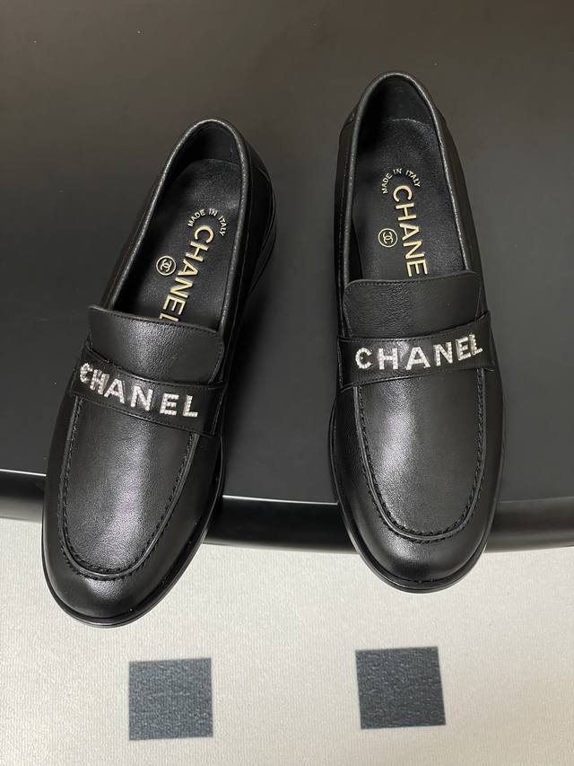 早秋新款 Chanel 小香25B 水晶钻双C扣乐福鞋厚底穆勒半拖鞋