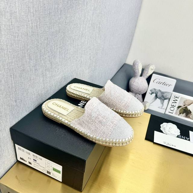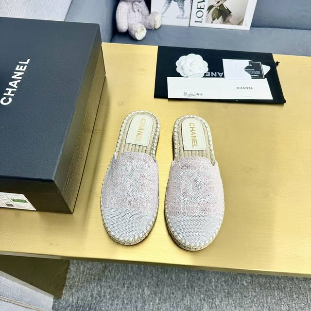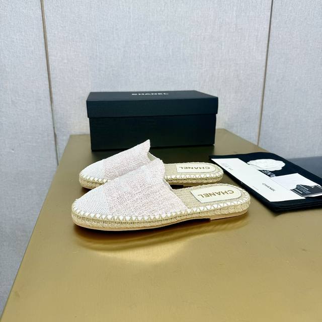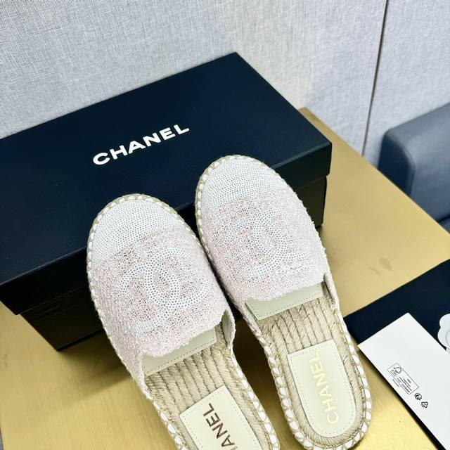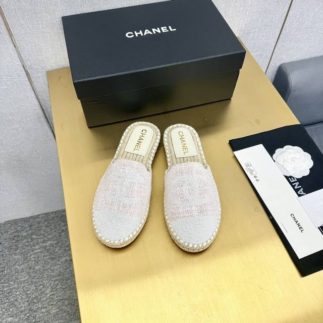 Chan E*L2024新配色香奈儿官网同步 渔夫鞋 专柜原版开发,正品工艺,手工折边后缝合,纯手工缝马克线,鞋正中的双c Logo点缀恰到好处,简约大方. 牛仔面小香拖鞋,单鞋 半拖!
