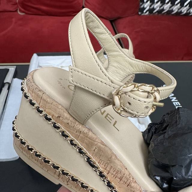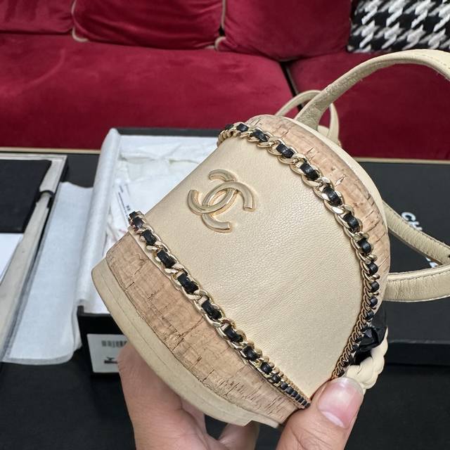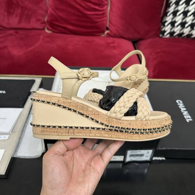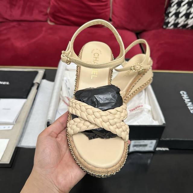 杏色凉鞋 上新啦Chanel香奈儿 最新款编织链条 凉鞋 拖鞋 厚底坡跟 小个子仙女♀最爱 三色齐发 全线出货中 35-40 P390