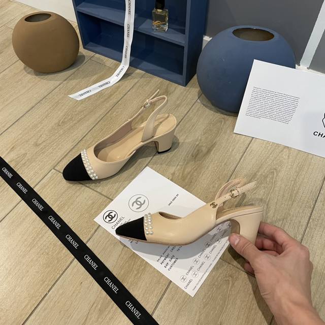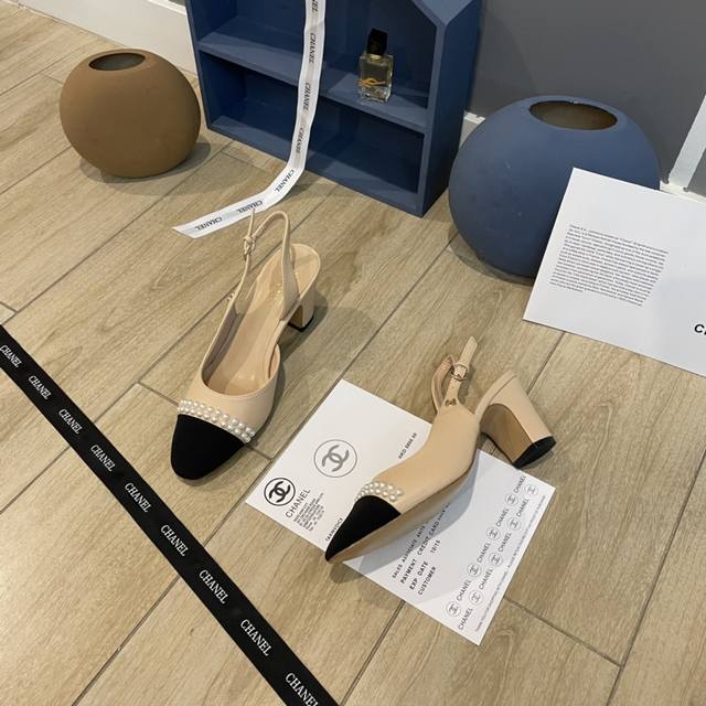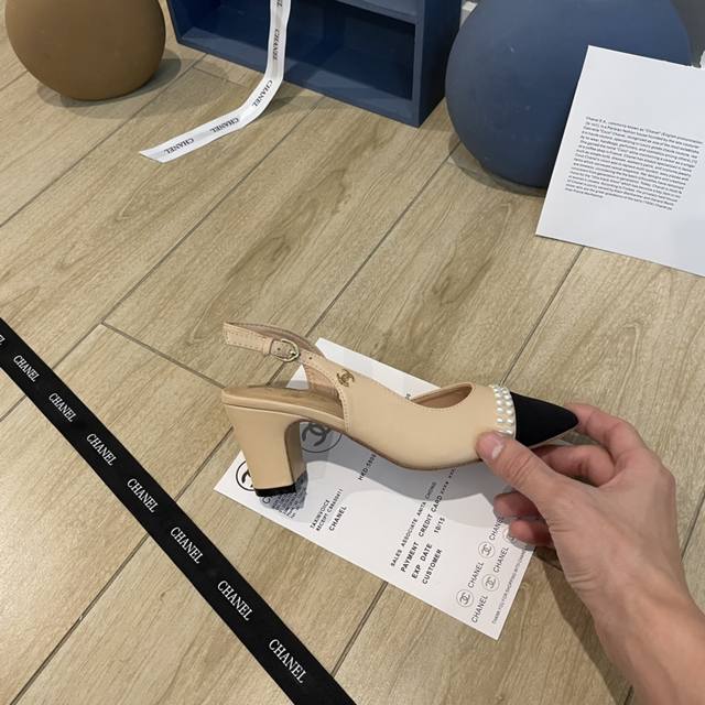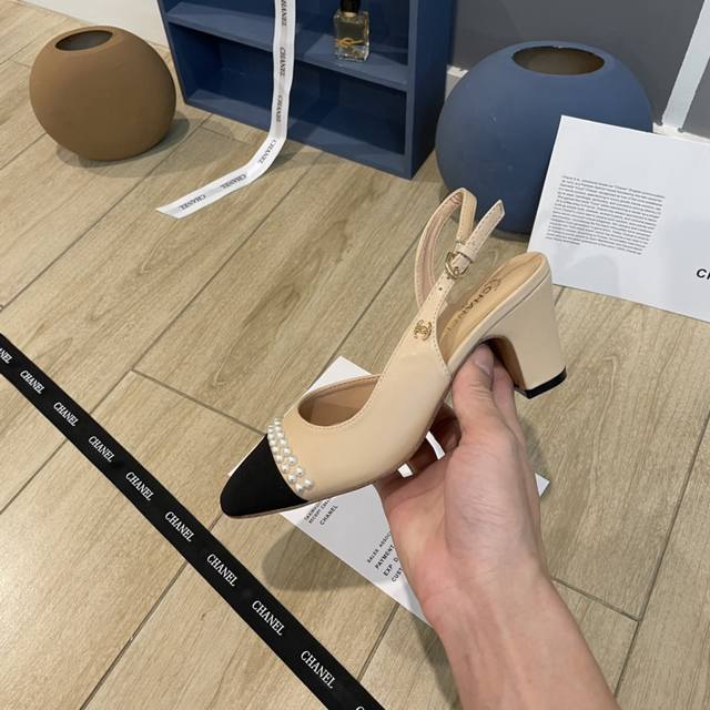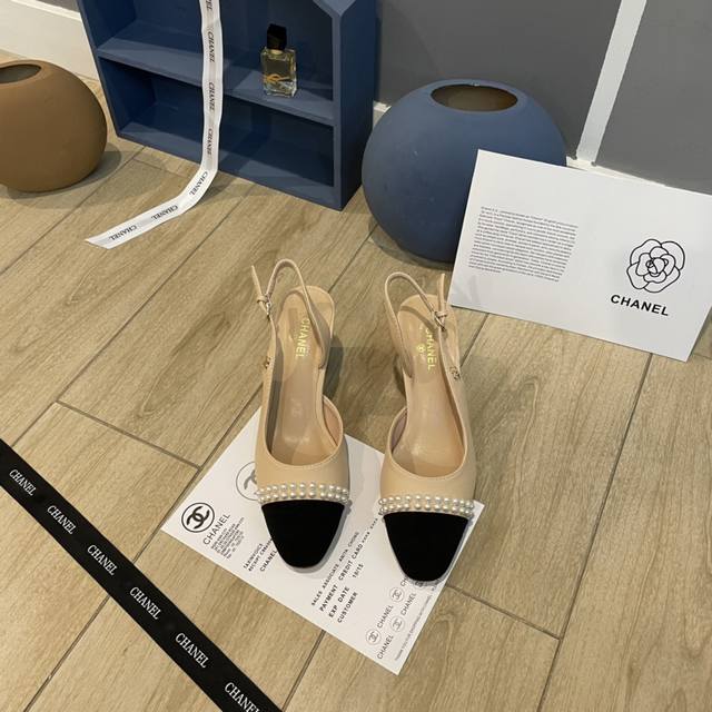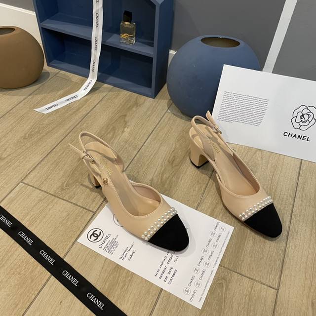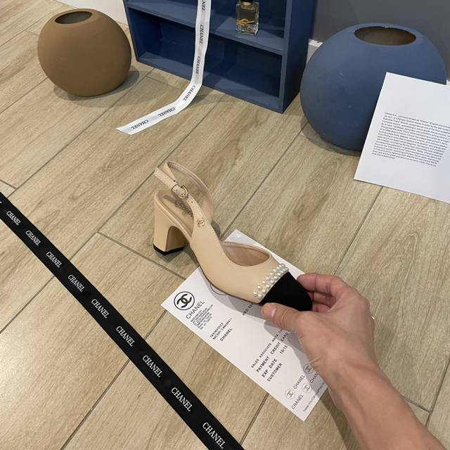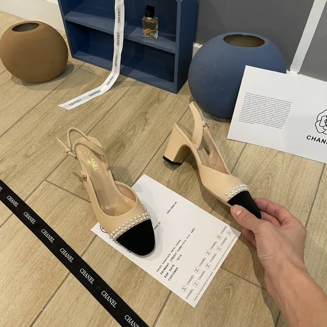 橙子出厂价 定制款 Chanel 香奈儿经典款 珍珠拼色小粗跟单鞋 跟高:7Cm 码数:34-40 备注:定制不退换