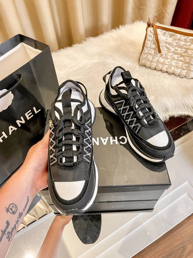 橙子出厂价 Chanel 香奈儿新款 黑白拼色波浪刺绣厚底运动鞋 休闲老爹鞋 码数:35-42