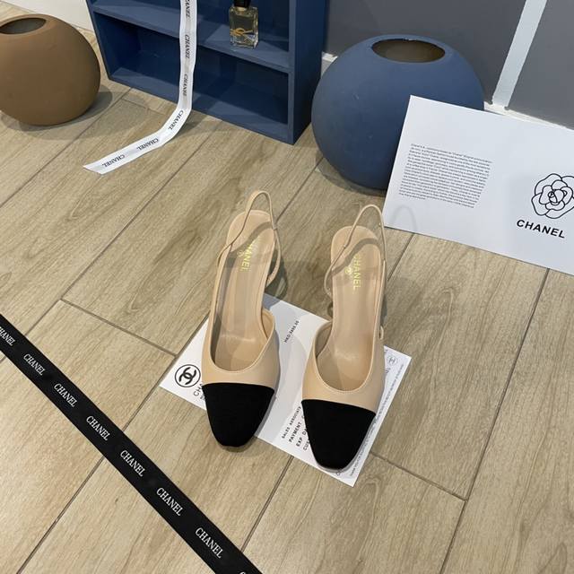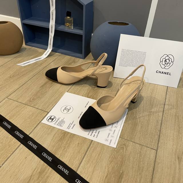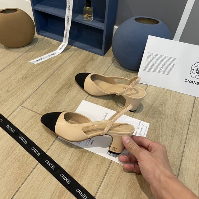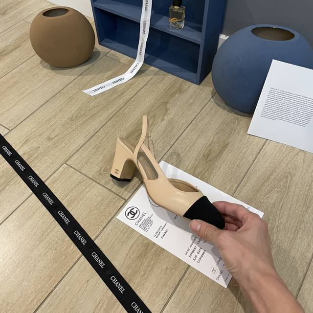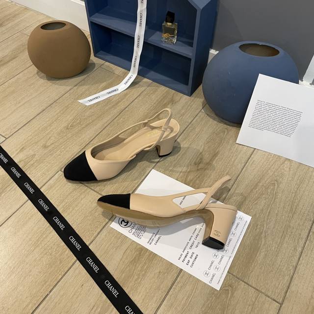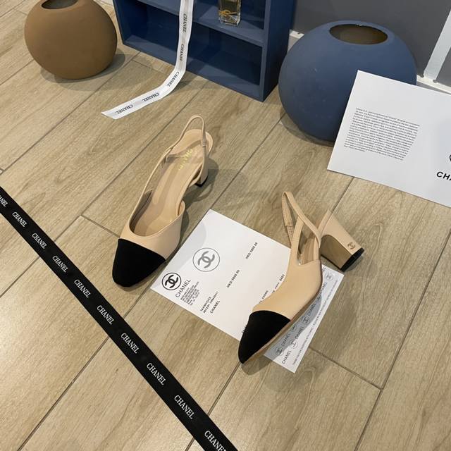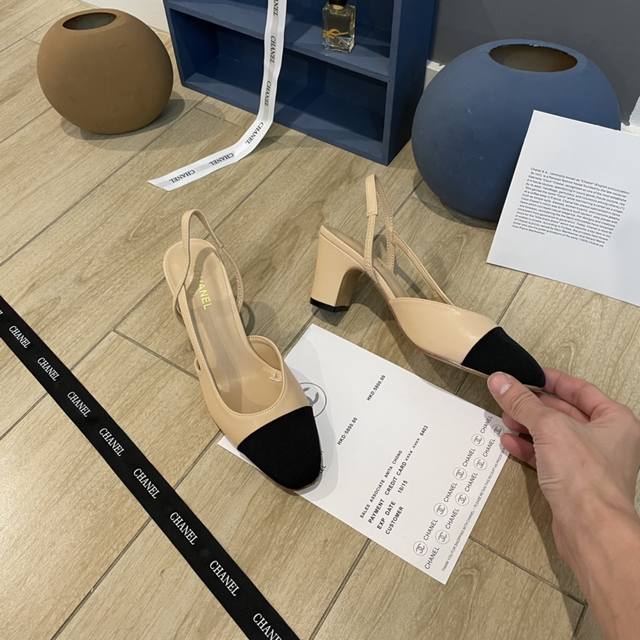 橙子出厂价 Chanel 香奈儿经典款 拼色包头小粗跟凉鞋 跟高:2.5Cm、7Cm 码数:34-40