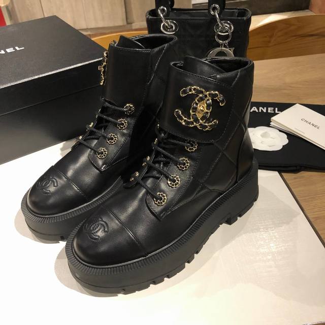 香奈儿双C装饰短靴,本季秋冬季必备单品!!