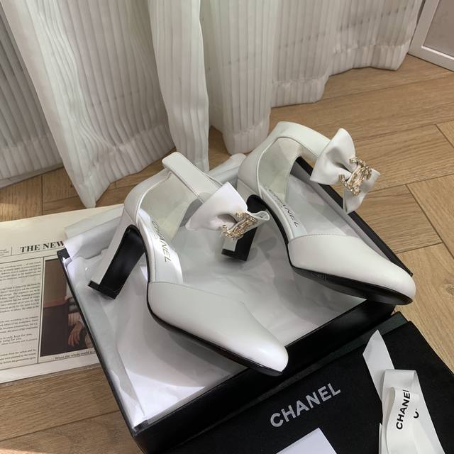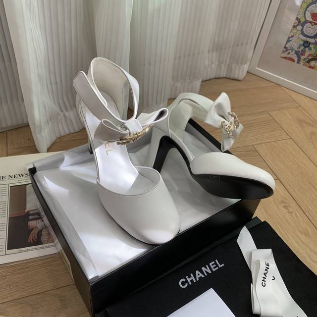 Chane*小香2024新款罗马高跟蝴蝶结凉鞋